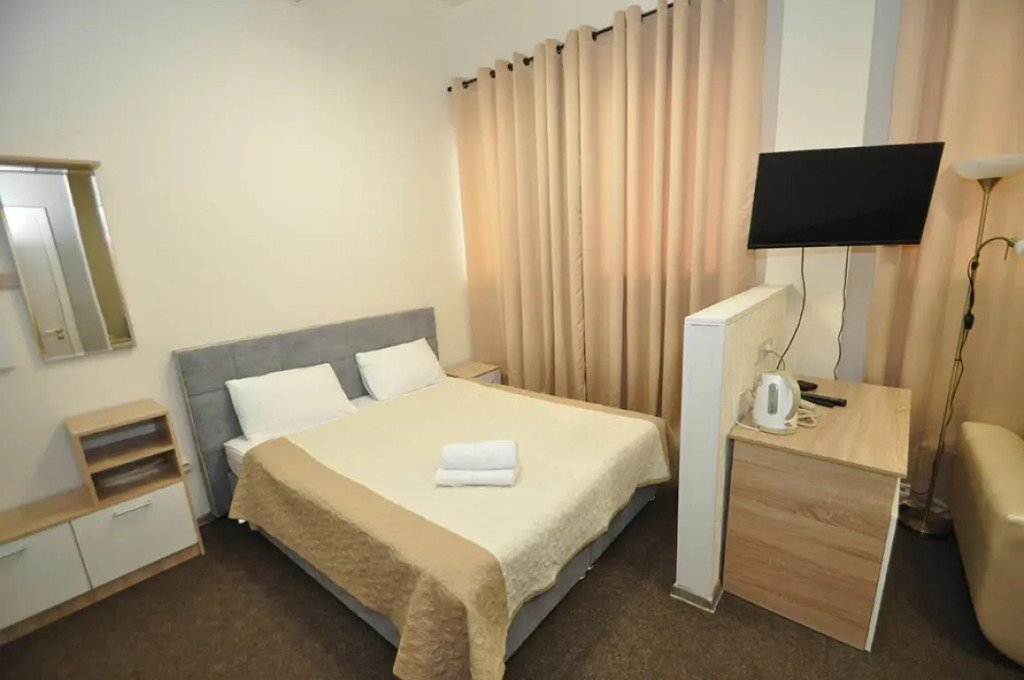 Номер уютно обставлен и оснащён необходимым, чтобы отдохнуть после долгого и насыщенного дня. Имеются телевизор. Оснащение зависит от выбранной категории номера.