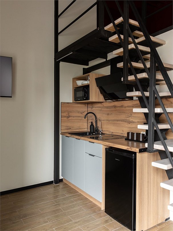 Двухуровневый номер делюкс с двуспальной кроватью и раскладным диваном, с кухней, Салют ТВ, кондиционеромУслуги и удобства