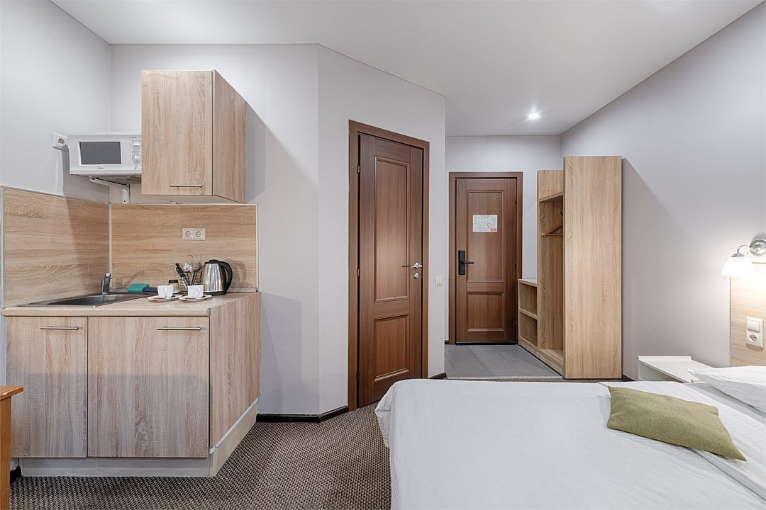 Улучшенный двухместный номер с собственной кухней. Наши номера оснащены: мини-холодильниками, wifi, кондиционерами, принадлежностями для кухни, мягкой мебелью.Услуги и удобства