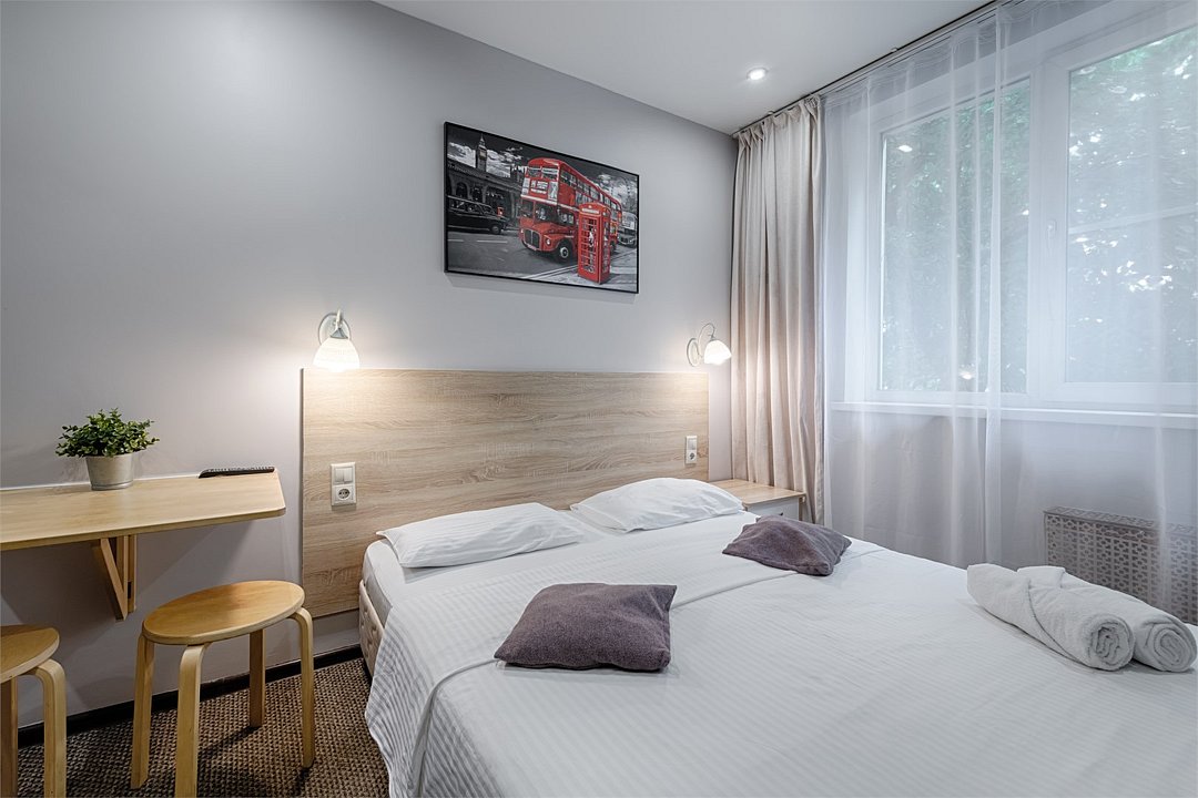 Бюджетный двухместный номер для проживания 1-2 человек с собственной ванной комнатой. Наши номера оснащены: мини-холодильниками, wifi, кондиционерами, принадлежностями для кухни, мягкой мебелью.Услуги и удобства