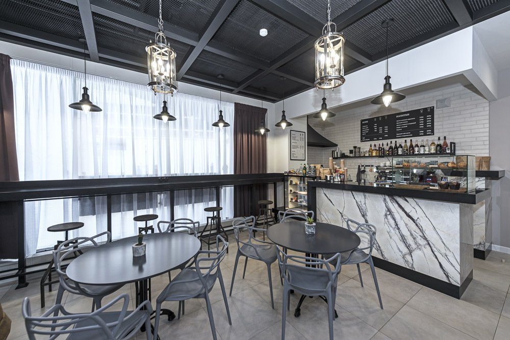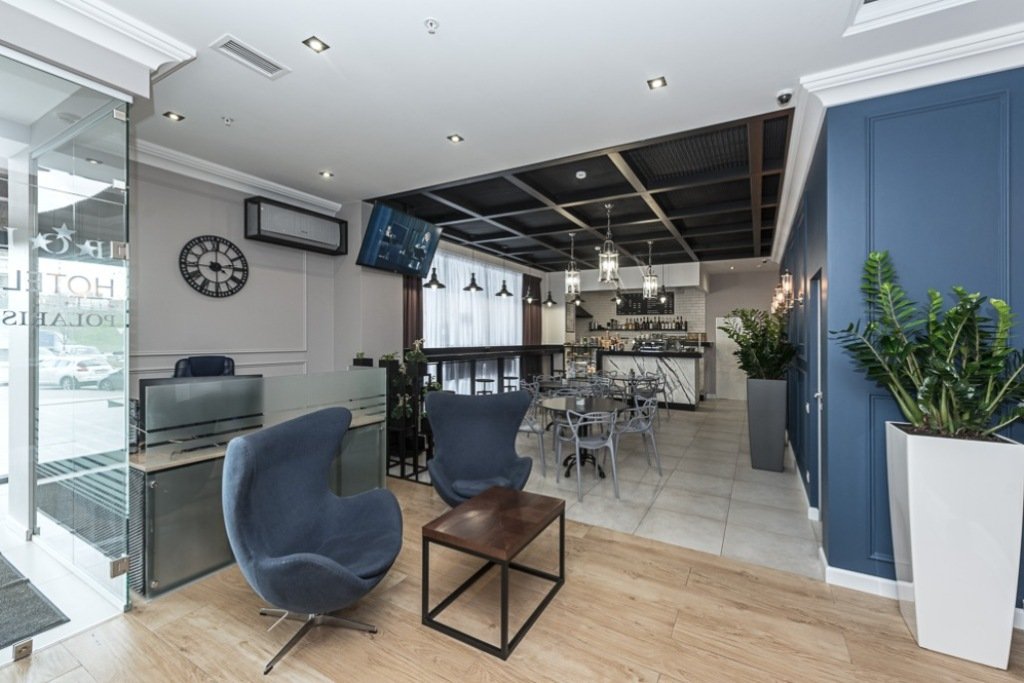 Для удобства гостей, на 1 этаже отеля расположена зона кафе, которое работает по будням. Завтраки проходят в кафе с 8:30 до 11:00 с понедельника по пятницу.