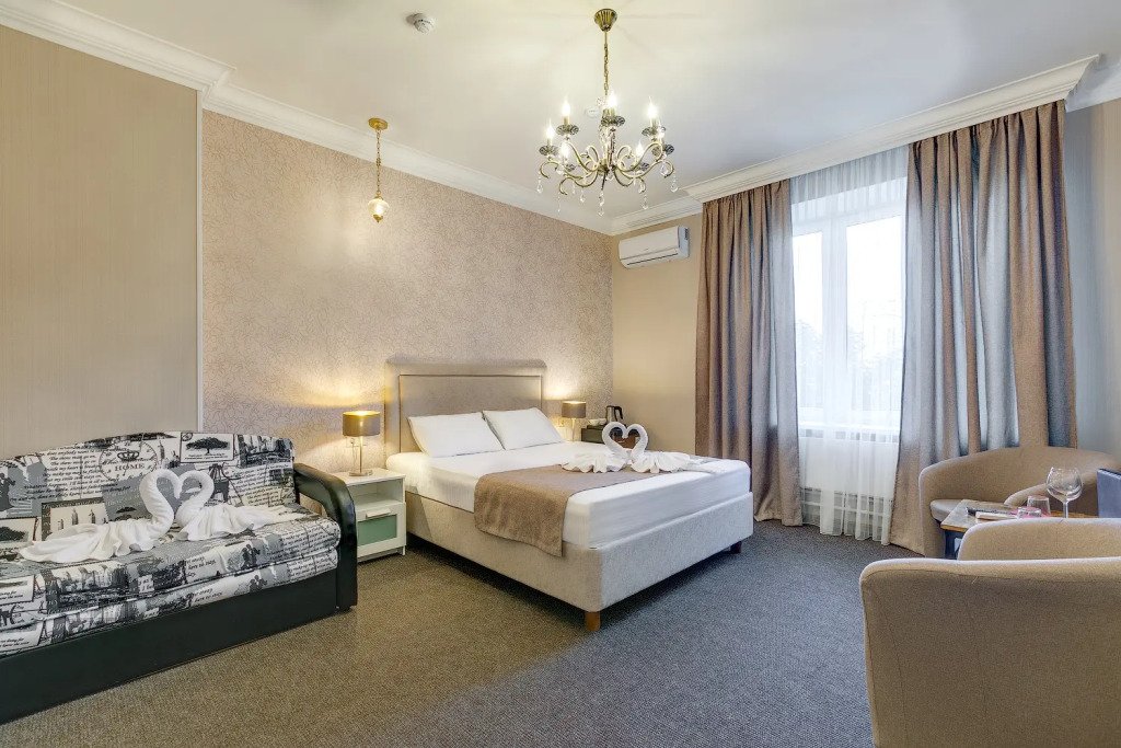 Чтобы вы могли отдохнуть после долгого дня, в номере есть телевизор, мини-бар и халат. Перечисленные услуги есть не во всех номерах.