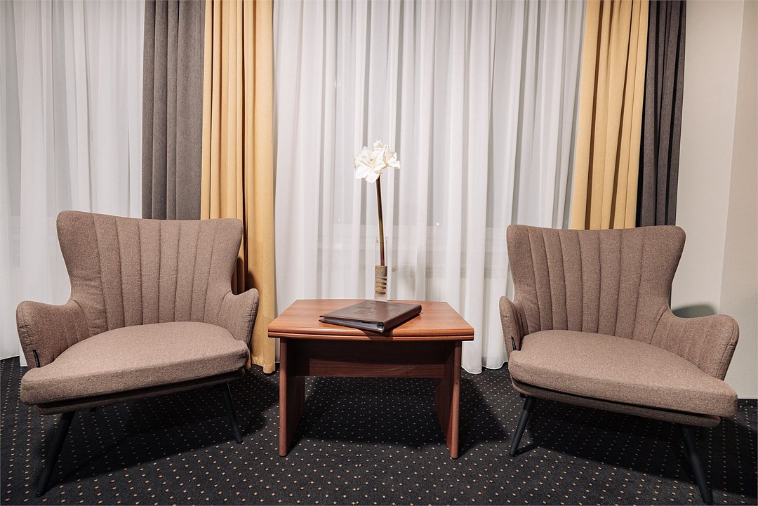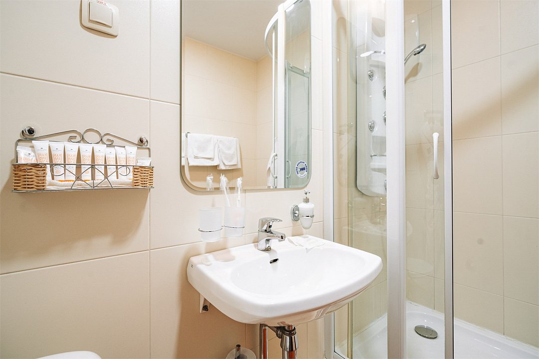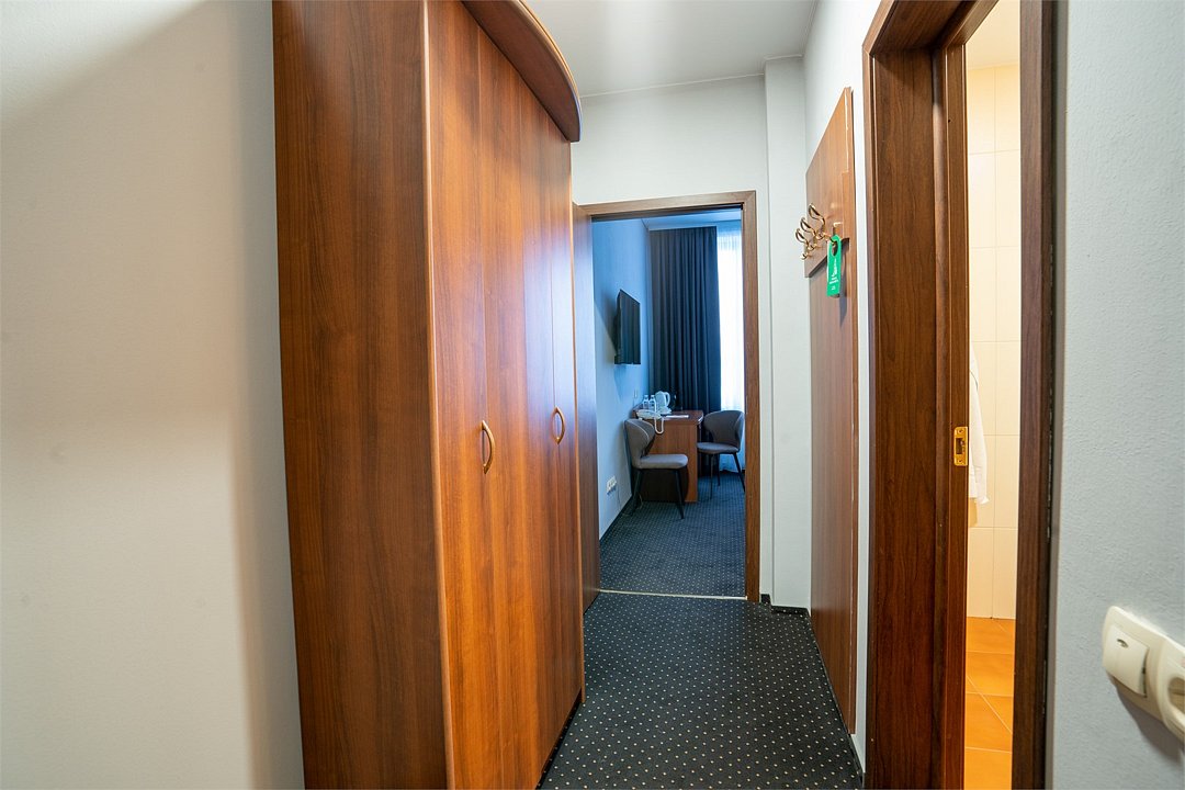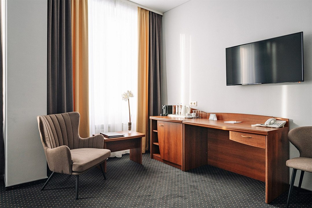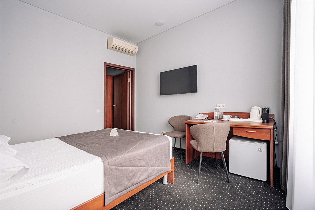 Одноместный номер. Просторная комната, оснащенная современной мебелью, чайной станцией, выполнена в теплых пастельных тонах. В каждом номере тапочки, французская гипоаллергенная косметика; позволит гостям в полной мере насладиться отдыхом. Площадь номера 15 кв.м.Услуги и удобства