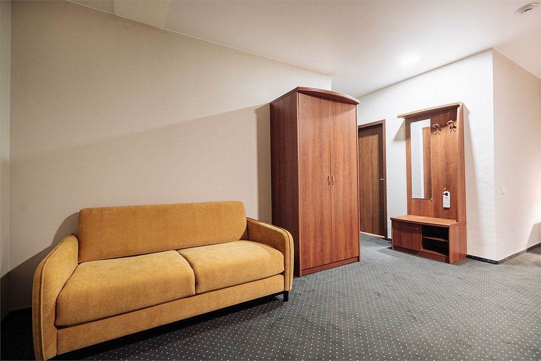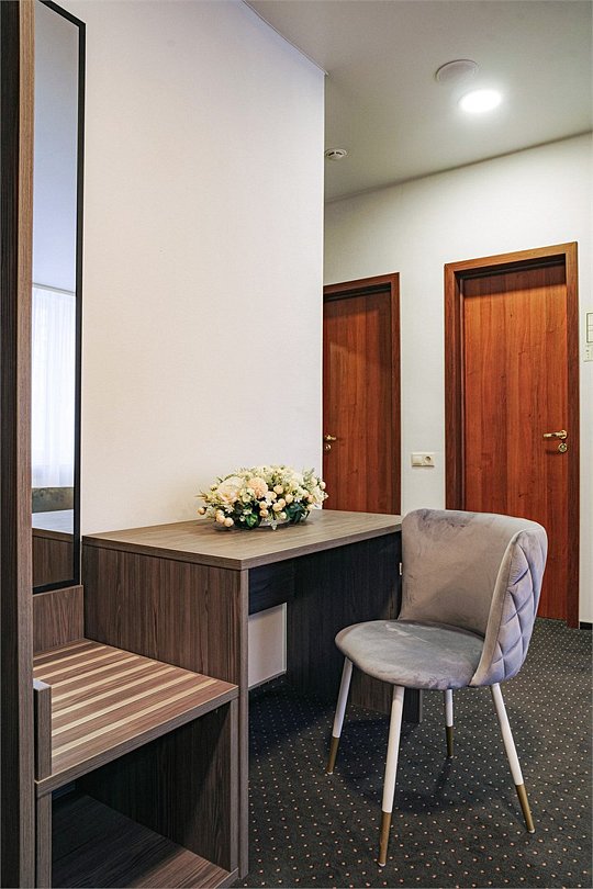 Однокомнатный номер. Просторная комната, оснащенная современной мебелью, чайной станцией, выполнена в теплых пастельных тонах. В каждом номере тапочки, французская гипоаллергенная косметика; позволит гостям в полной мере насладиться отдыхом. Площадь номера 15 кв.м.Услуги и удобства