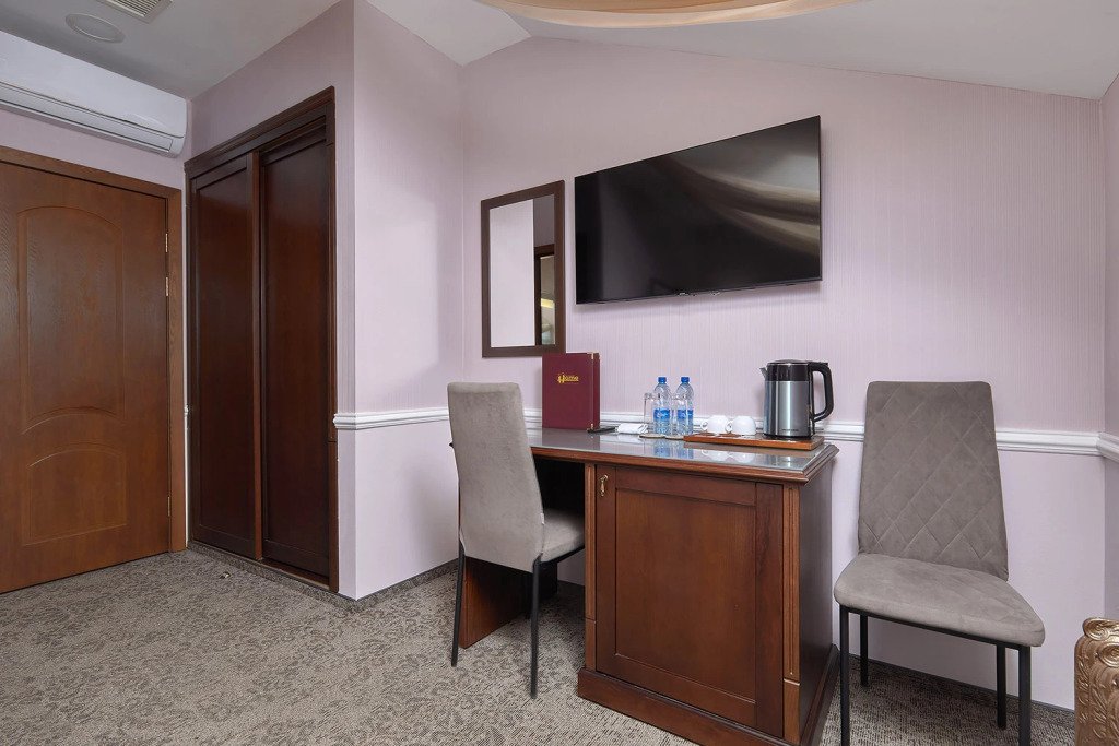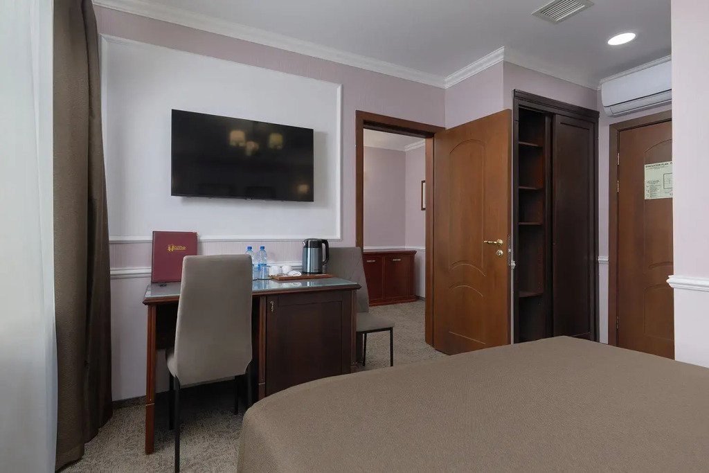 В номере вы найдёте телевизор и халат. Перечисленные услуги есть не во всех номерах.