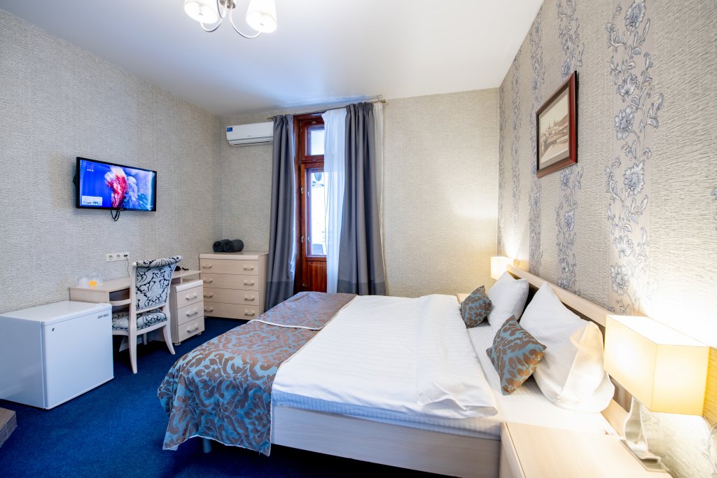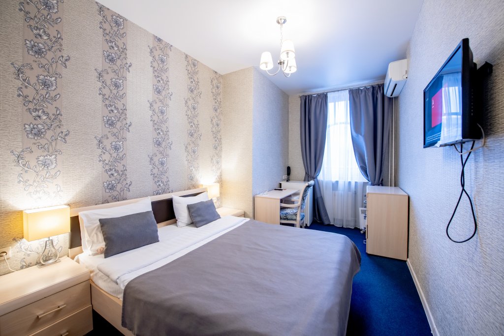 В номере есть душ, телевизор и тапочки. Оснащение зависит от выбранной категории номера.