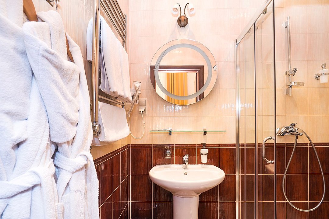 телевизор, Wi-Fi, холодильник, кондиционер, фен, ванная комната, халаты, банные полотенца, тапочки, гигиенические средства, двуспальная кровать, шкаф для одежды, сейф, душ, туалет, без питомцевВ гостиничном номере