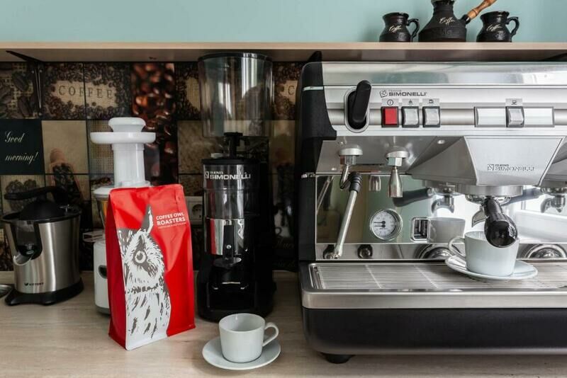 В отеле работает своя кофейня. В любой момент Вы можете заказать себе чашечку настоящего итальянского кофе. Здесь используется профессиональное оборудование от ведущего производителя Nuova Simonelli. Все администраторы прошли курсы бариста.