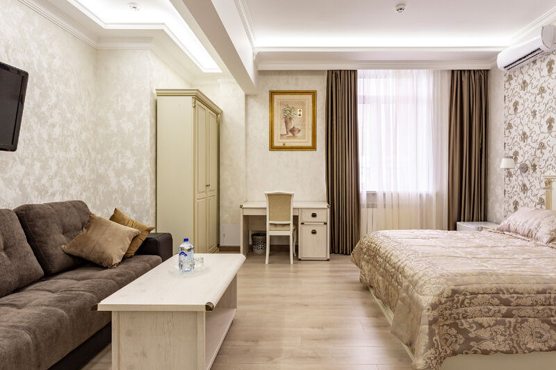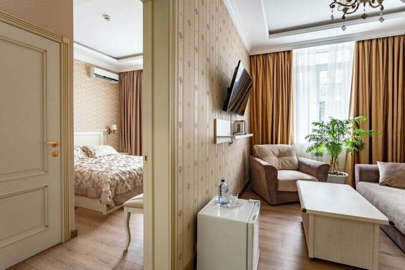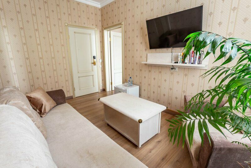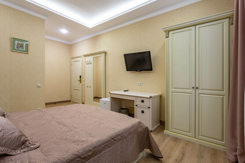 Путешествие с семьейСемейные выходныеОстановились семьей в семейном двухкомнатном номере. Понравилось все: обстановка, ремонт, персонал, кофе, месторасположение. Остановка в 3-ех метрах от входной двери гостиницы. Рядом Пятерка, аптека, КБ. Номер уютный, телевизоры в обеих комнатах, есть холодильник, бутылка воды, стаканы. В ванной: фен, гель, шампунь, мыло, полотенца. Матрас очень удобный. Шторы блэкаут, что очень порадовало. В общем твердая 5ка. Рекомендую.