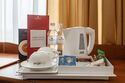 - Площадь номера 38 кв.м. - Кровать queen-size 180*200 см. - Бесплатный Wi-Fi - Музыкальная система - Индивидуальный сейф - Швейный набор - Чайная пара - Чай, кофе, сахар и сливки - Минеральная вода - Док-станция для зарядки и синхронизации Apple-устройств - Центральное кондиционирование с индивидуальным пультом управления - Телефон - Мягкий раскладной диван-трансформер - Журнальный столик - Письменный стол - ЖК телевизор - Шкаф для верхней одежды - Дополнительное место предоставляется по запросу (стоимость без питания 1500 руб./сутки) - Дети до 10 лет включительно размещаются бесплатно без предоставления дополнительного места В ванной комнате: - Ванна - Фен - Одноразовый зубной набор - Тапочки - Банный халат - Комплект полотенец - Косметические принадлежностиУслуги и удобства