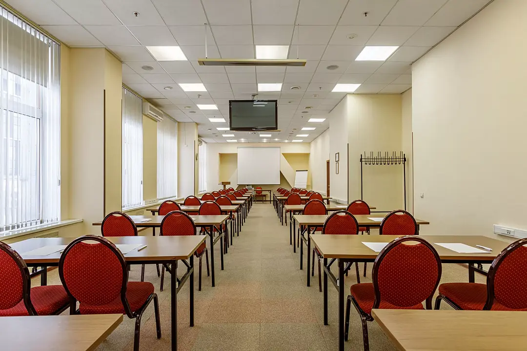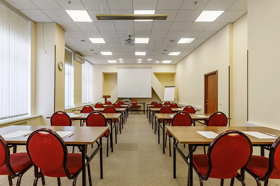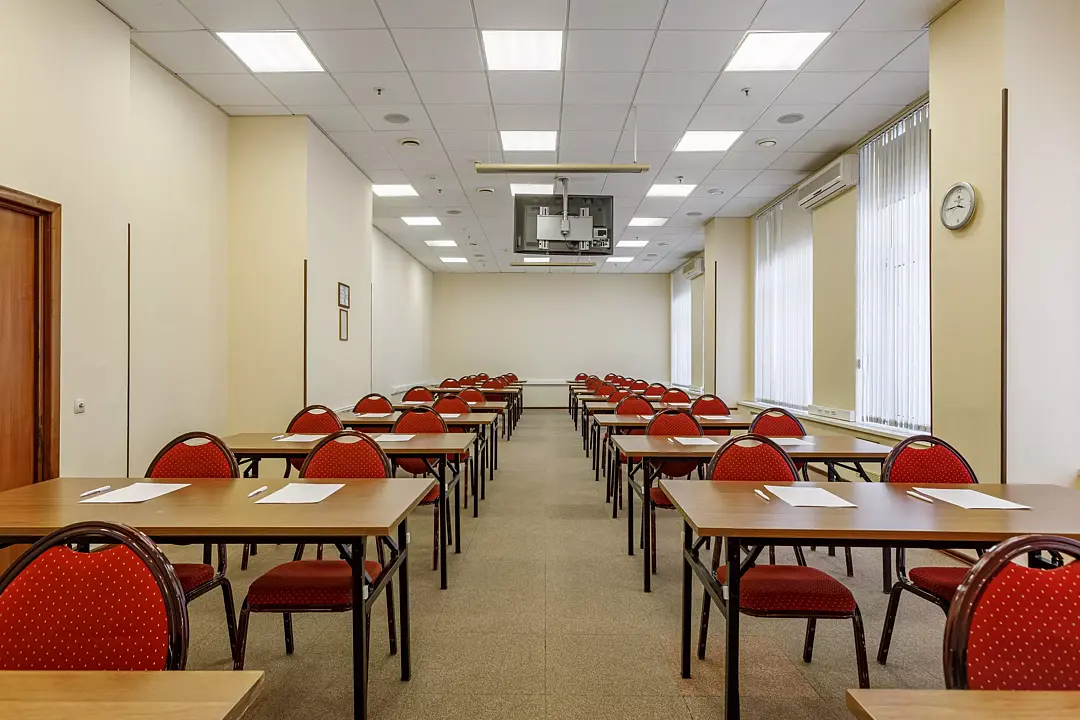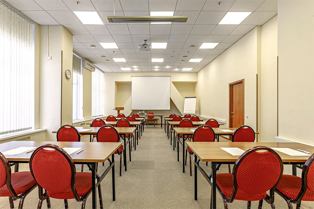 Светлый и уютный, зал, площадью 45 м2 рассчитан для проведения небольших конференций, семинаров и тренингов. В зале имеется мультимедийное оборудование, акустическая система и беспроводной доступ к сети интернет. Зал обладает вместимостью до 55 человек.
