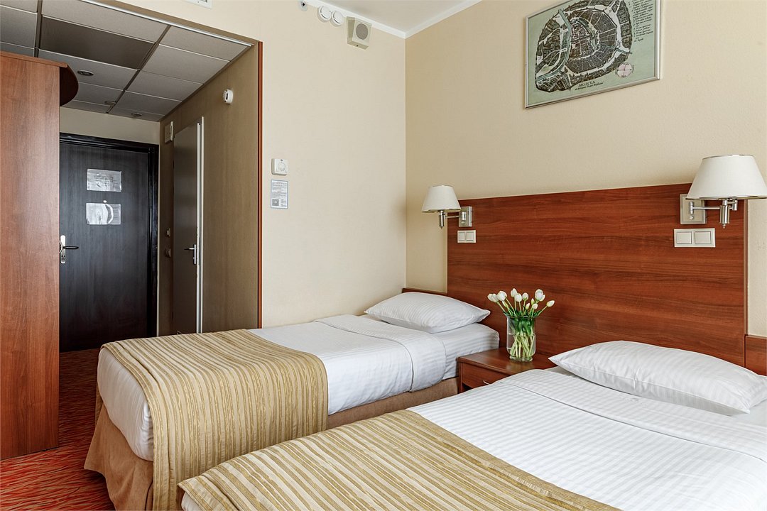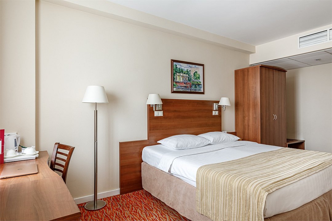 - Площадь номера от 18 кв.м. - Две раздельные кровати 90*200 см. - Бесплатный Wi-Fi - Индивидуальный сейф - Электрический чайник - Чайная пара - Чай, кофе, сахар и сливки - Центральное кондиционирование с индивидуальным пультом управления - Письменный стол - Телефон - ЖК телевизор - Спутниковое телевидение - Шкаф для верхней одежды - Дополнительное место не предусмотрено В ванной комнате: - Душ - Фен - Тапочки - Комплект полотенец - Косметические принадлежностиУслуги и удобства