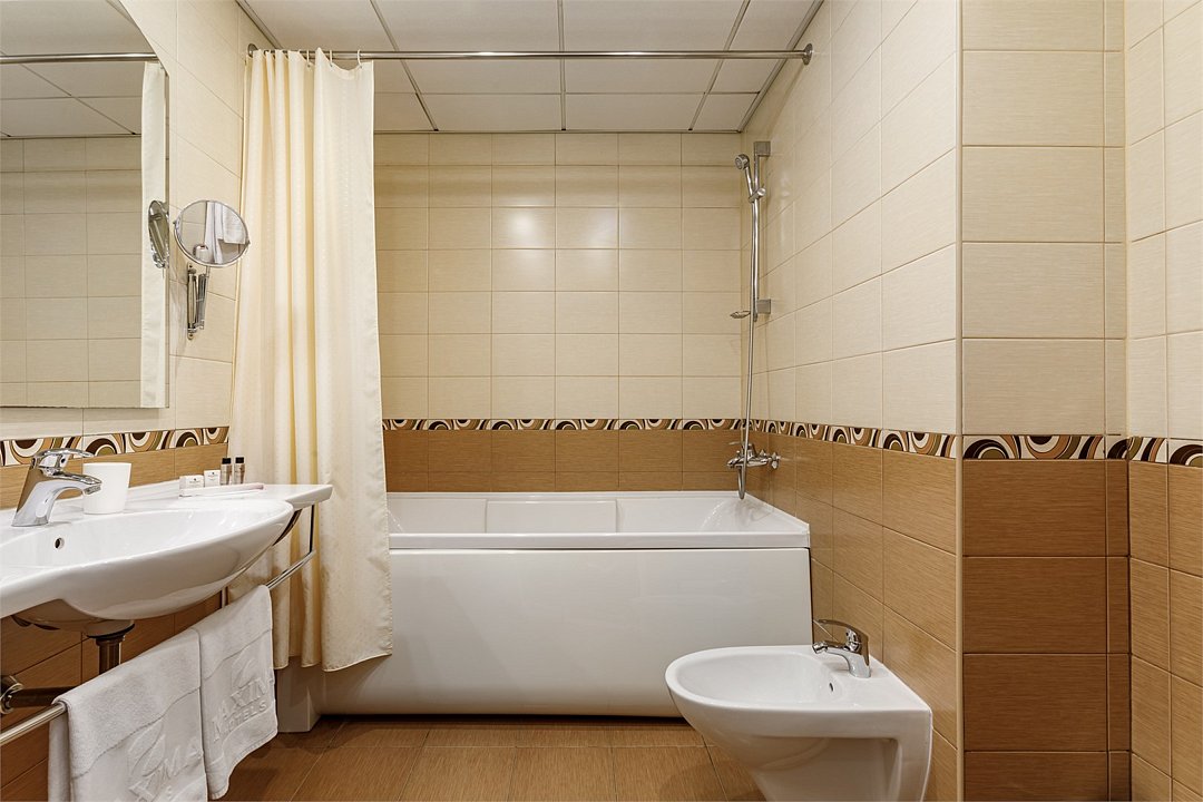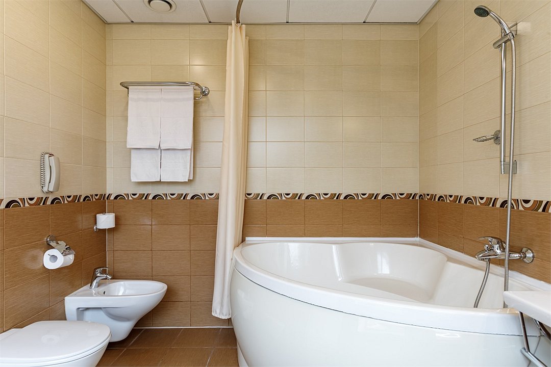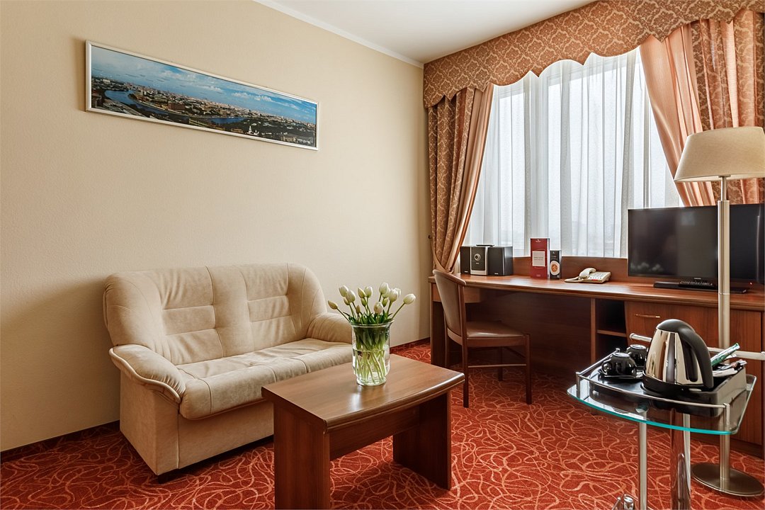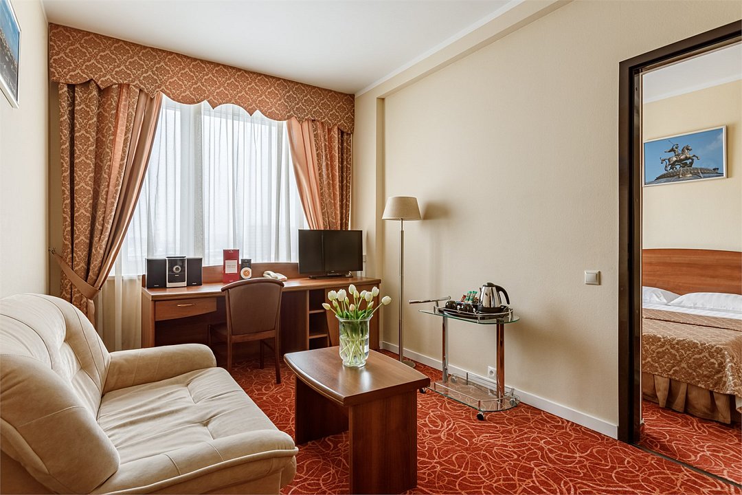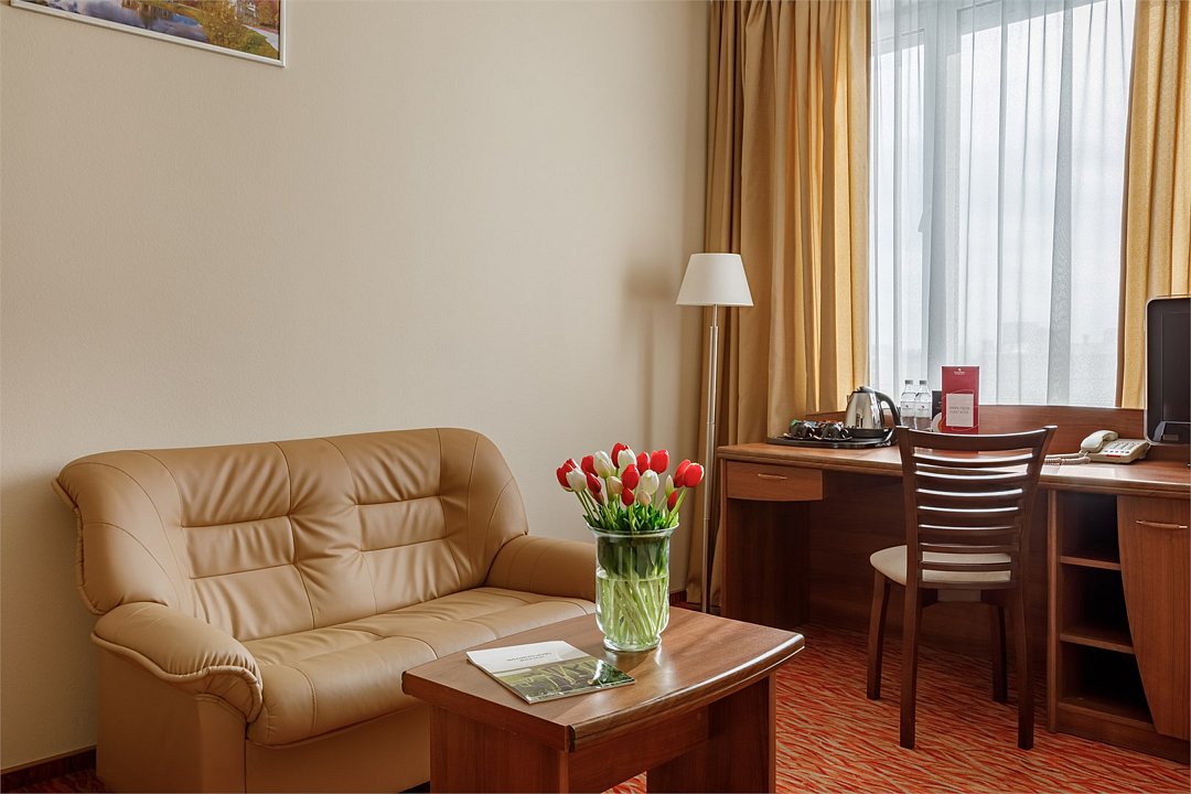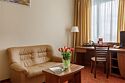 - Площадь от 32 кв.м.. - Две раздельные кровати 90*200 см. - Бесплатный Wi-Fi - Индивидуальный сейф - Чайная пара - Чай, кофе, сахар и сливки - Минеральная вода - Центральное кондиционирование с индивидуальным пультом управления - Телефон - Мягкий раскладной диван - Журнальный столик - Письменный стол - 2 ЖК телевизора - 2 шкафа для верхней одежды - Дополнительное место предоставляется по запросу (стоимость без питания 1500 руб./сутки) - Дети до 10 лет включительно размещаются бесплатно без предоставления дополнительного места В ванной комнате: - Ванна - Фен - Тапочки - Банный халат - Комплект полотенец - Косметические принадлежностиУслуги и удобства