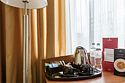 телевизор, спутниковое телевидение, кабельное телевидение, интерактивное телевидение, музыкальный центр, Wi-Fi, телефон, кондиционер, светильник, настольные лампы, фен, электронные замки, ванная комната, санузел, халаты, тапочки, гигиенические средства, косметические средства, кровать «Queen size», ортопедический матрас, диван, кресла, тумбы, стулья, шкаф для одежды, вешалки, журнальный столик, письменный стол, багажная тумба, мини-бар, письменные принадлежности, чайный набор, информационная карта, меню, сейф, чайник, унитаз, раковина, мягкая мебель, косметическое зеркало, вид на город, вид во двор, без питомцевВ номере