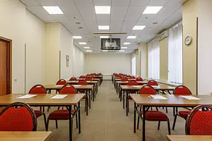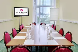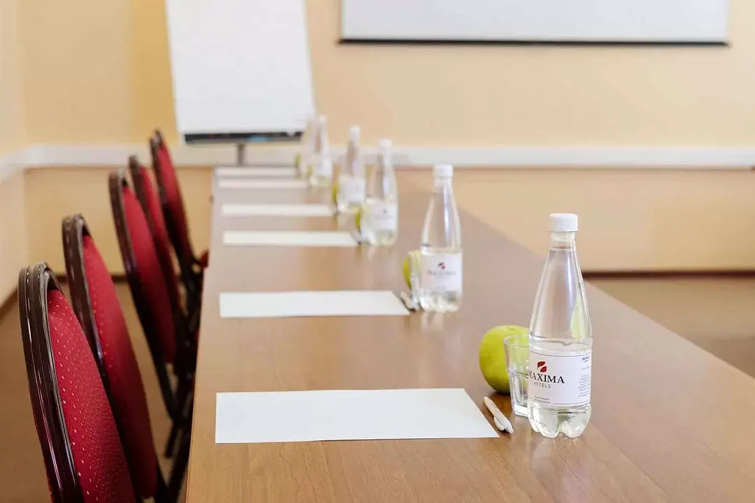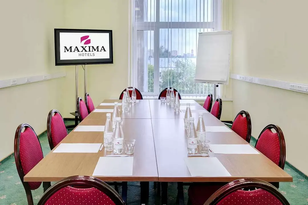 Светлая и уютная переговорная комната в Максима Панорама Отель предназначена для проведения переговоров, совещаний и деловых встреч. Общая площадь комнаты 26 м2, вместимость 16 человек. Для удобства Гостей в комнате предусмотрена плазменная панель для проведения презентаций и беспроводной доступ к сети интернет.