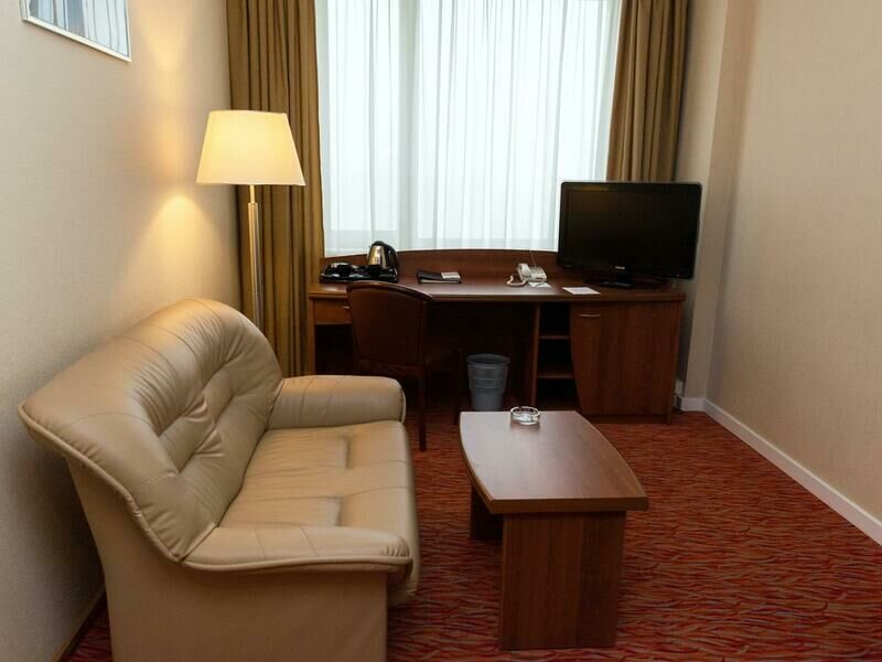 телевизор, спутниковое телевидение, кабельное телевидение, интерактивное телевидение, Wi-Fi, телефон, кондиционер, светильник, настольные лампы, фен, электронные замки, ванная комната, ванна, санузел, тапочки, гигиенические средства, косметические средства, две односпальные кровати, ортопедический матрас, диван, кресла, тумбы, стулья, шкаф для одежды, вешалки, журнальный столик, письменный стол, зеркало, комод, две комнаты, мини-бар, письменные принадлежности, чайный набор, информационная карта, меню, сейф, чайник, унитаз, раковина, мягкая мебель, вид на город, вид во двор, без питомцевВ номере