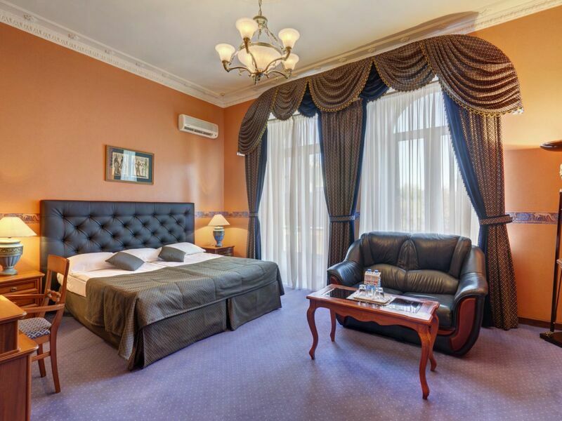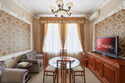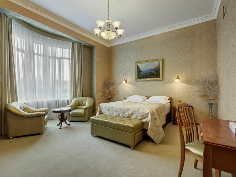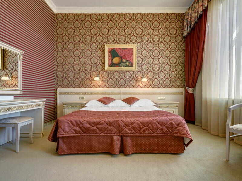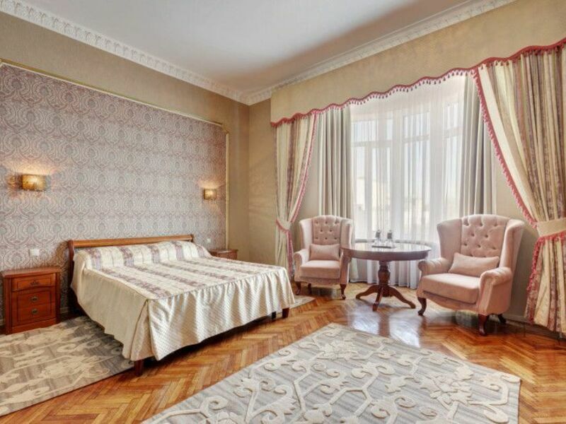 Интерьер с изысканным дизайном подчеркнут классической мебелью и дополнен историческими элементами декора, которые бережно сохраняются сотрудниками отеля на протяжении десятилетий. Расположение с 3 по 7 этаж. Вид на Садовое кольцо, Театр Сатиры или внутренний дворик отеля.