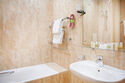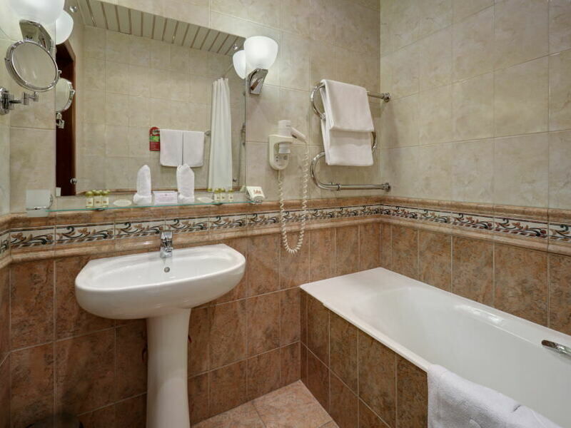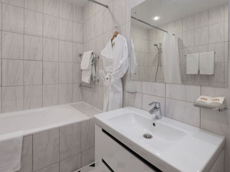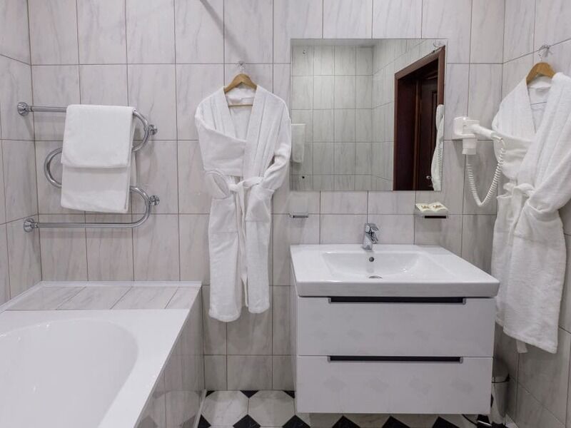 В ванной комнате: ванна или душевая кабина, сушилка для полотенец, фен, гигиенический набор, банный халат и тапочки. Утюг с гладильной доской предоставляются по запросу.