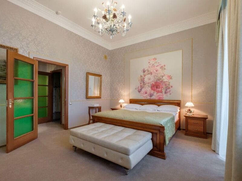 Элегантные однокомнатные номера в классическом стиле, каждый из которых неповторим. С большой двуспальной кроватью.