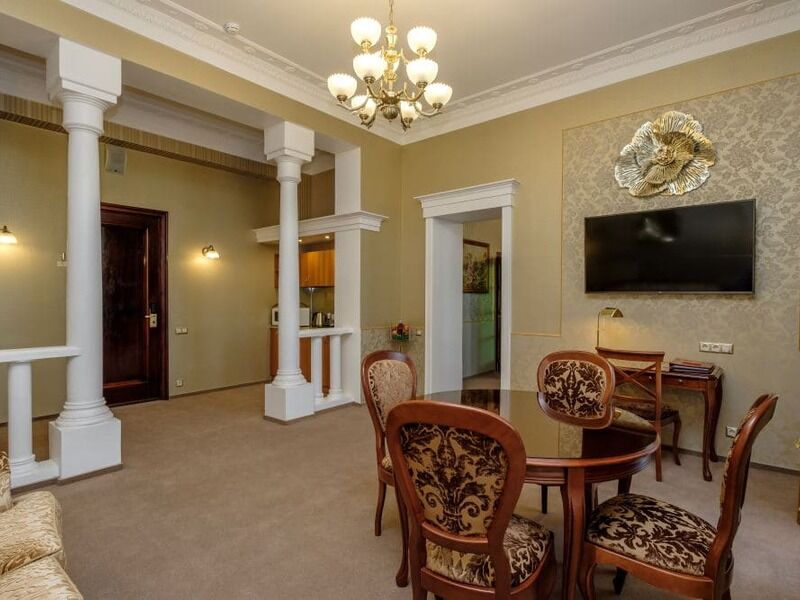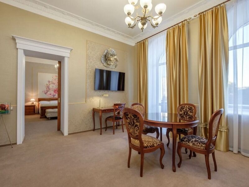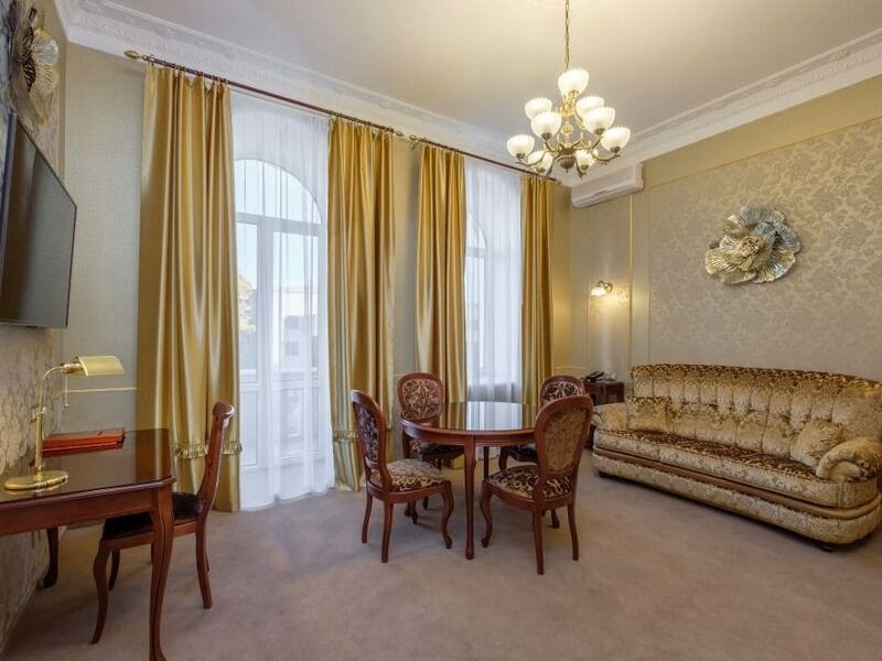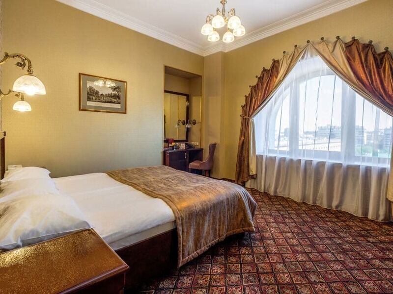 Интерьер с изысканным дизайном подчеркнут классической мебелью и дополнен историческими элементами декора, которые бережно сохраняются сотрудниками отеля на протяжении десятилетий. Расположение с 3 по 7 этаж. Вид на Садовое кольцо , Театр Сатиры или внутренний дворик отеля.