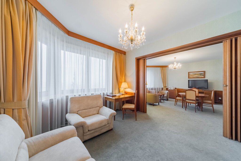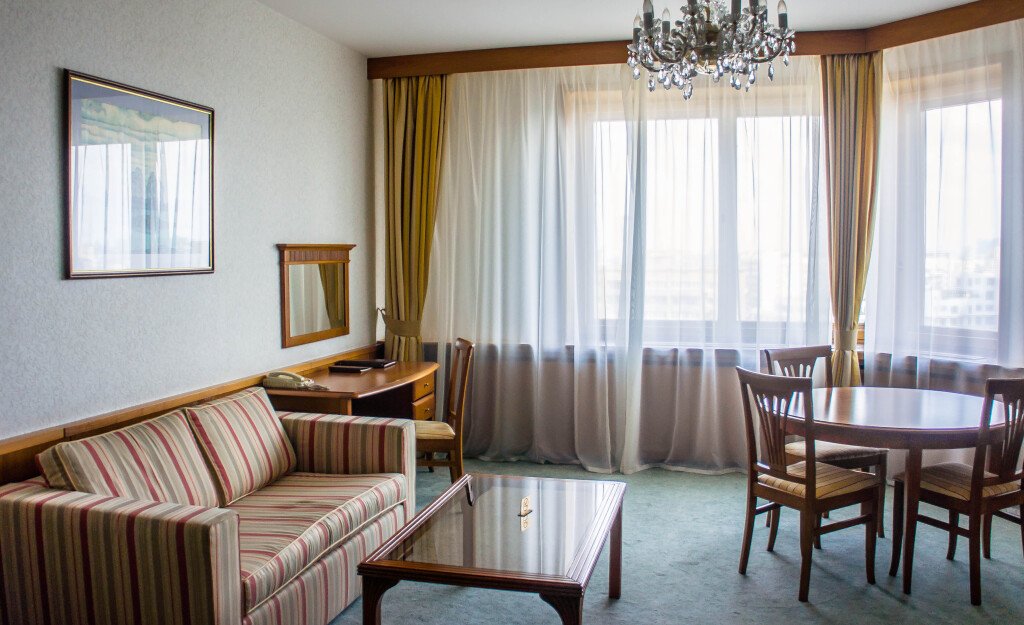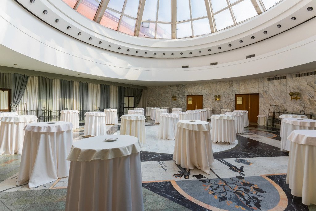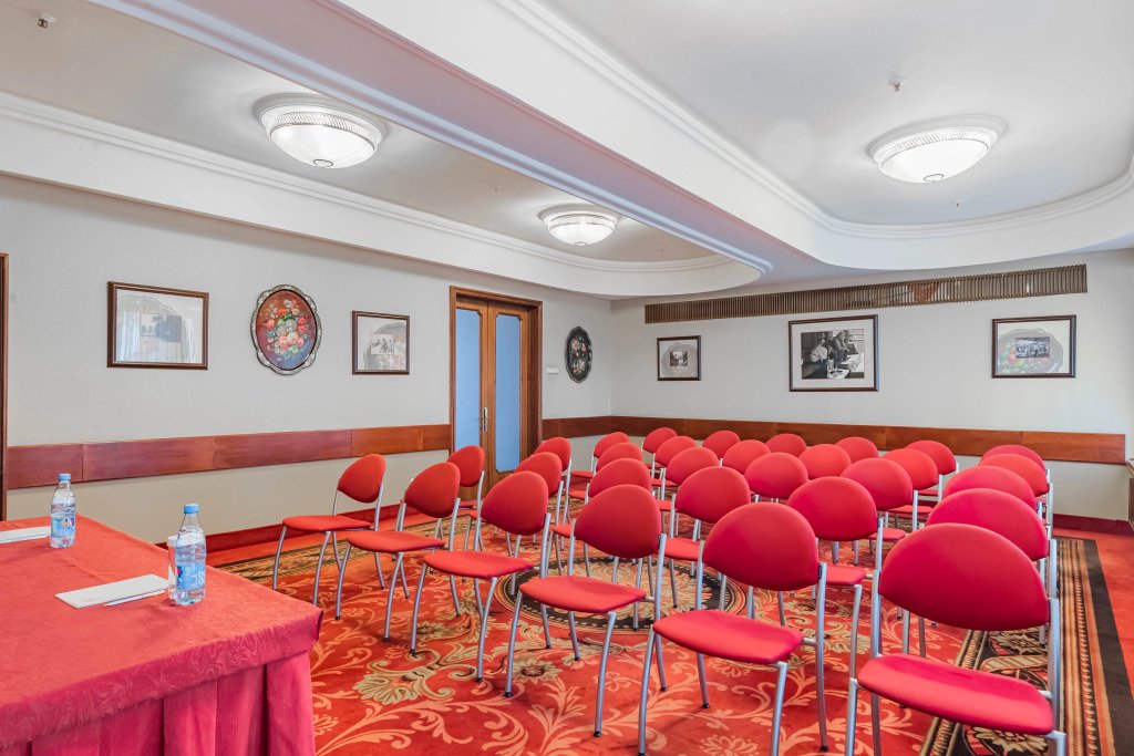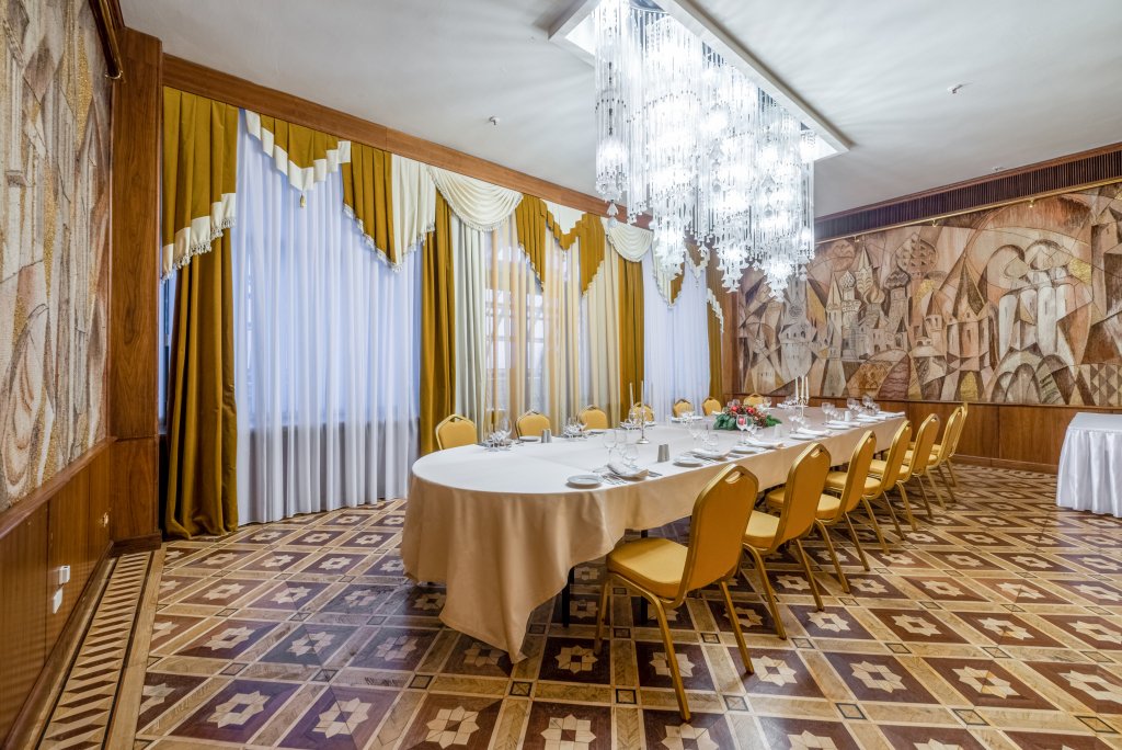 Гостиница располагает 20 залами различной вместимости для проведения мероприятий любого уровня и формата с полным техническим сопровождением и предоставлением питания. К услугам гостей 206 номеров различных категорий.
