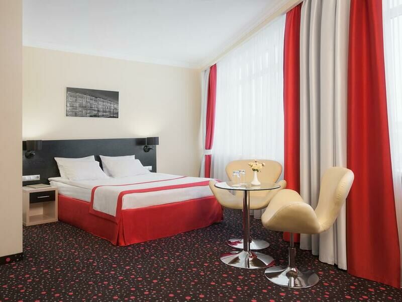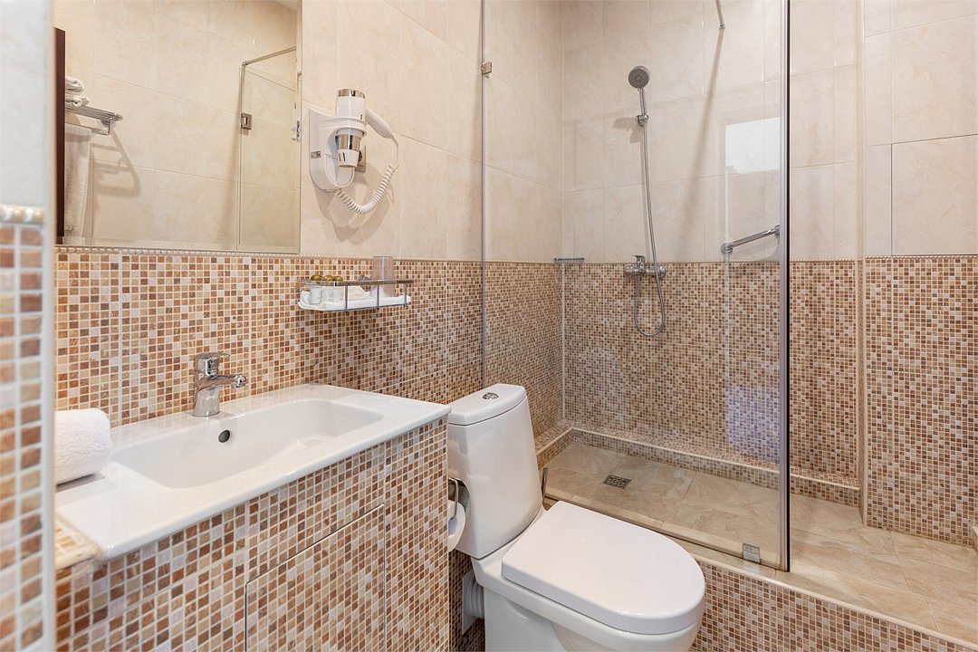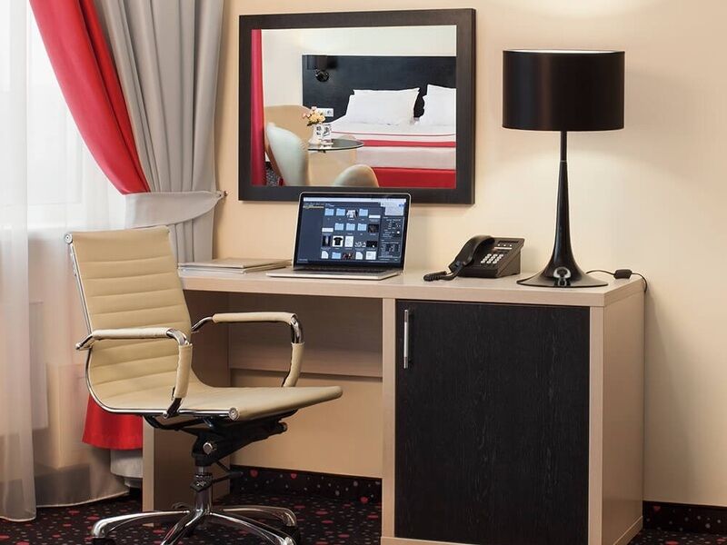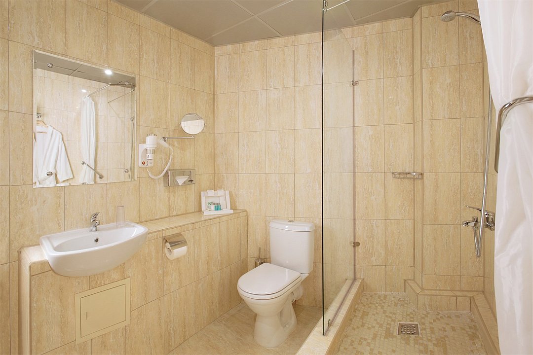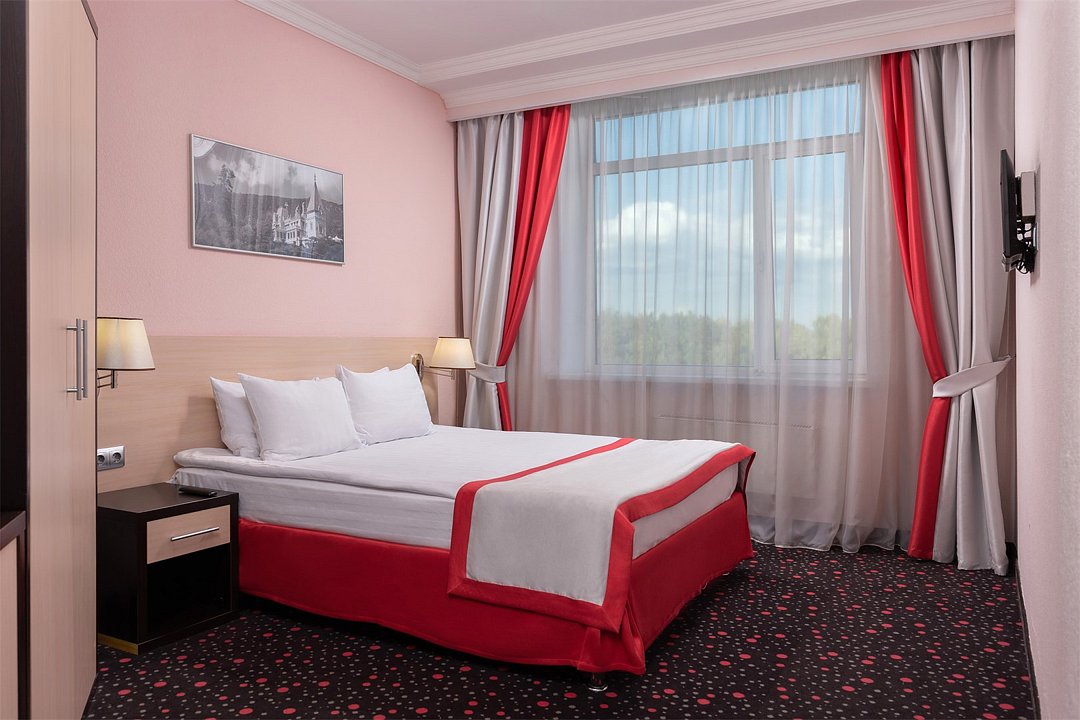 Просторный номер площадью от 20 до 27 м². Номер укомплектован индивидуальным набором (мыло, шампунь, гель для душа). По запросу сотрудники предоставят гладильную доску и утюг, швейный набор, обогреватель и чайник.Услуги и удобства