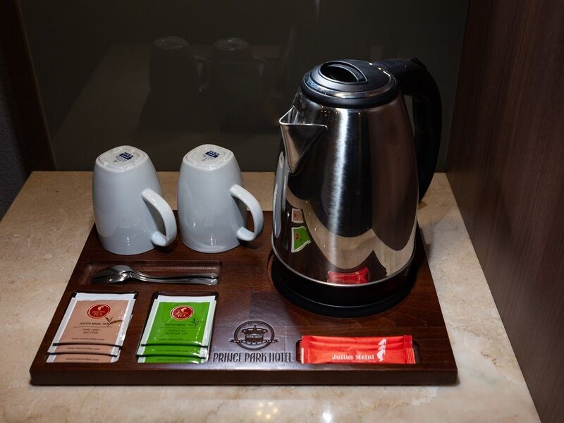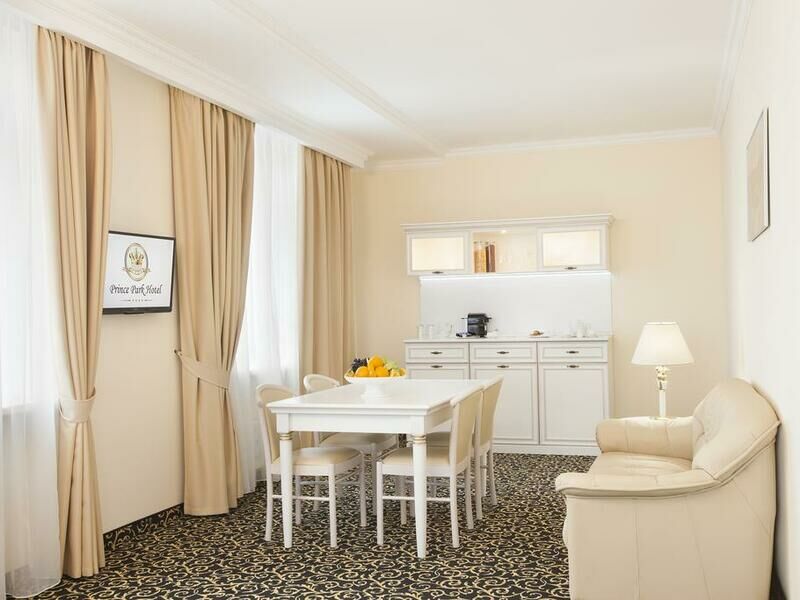 «Принц-парк отель» расположен на границе городской инфраструктуры и зеленой зоны возле палеонтологического музея. Это 6-этажное здание с лифтом включает номера категории Стандарт, Люкс, Студии и Бизнес. Одно- и двухместные номера обставлены удобной, классической мебелью, современной бытовой техникой. В ванных комнатах гости могут пользоваться косметическими наборами для душа, а в номерах Люкс даже есть джакузи и кухня.