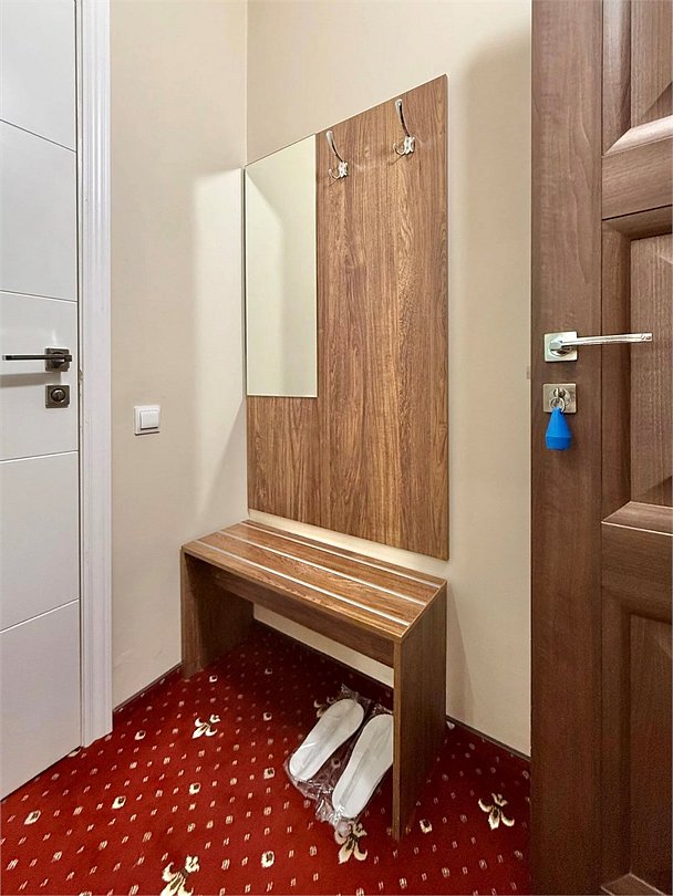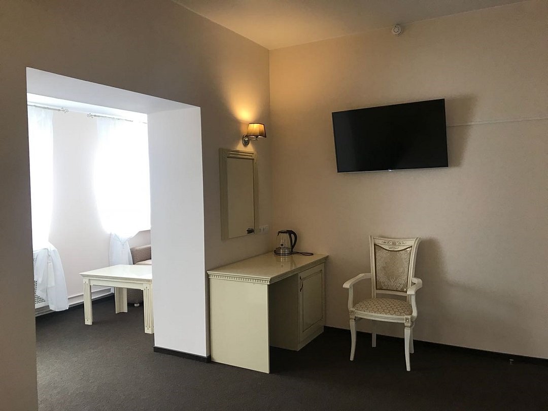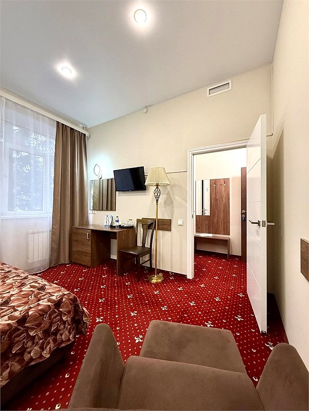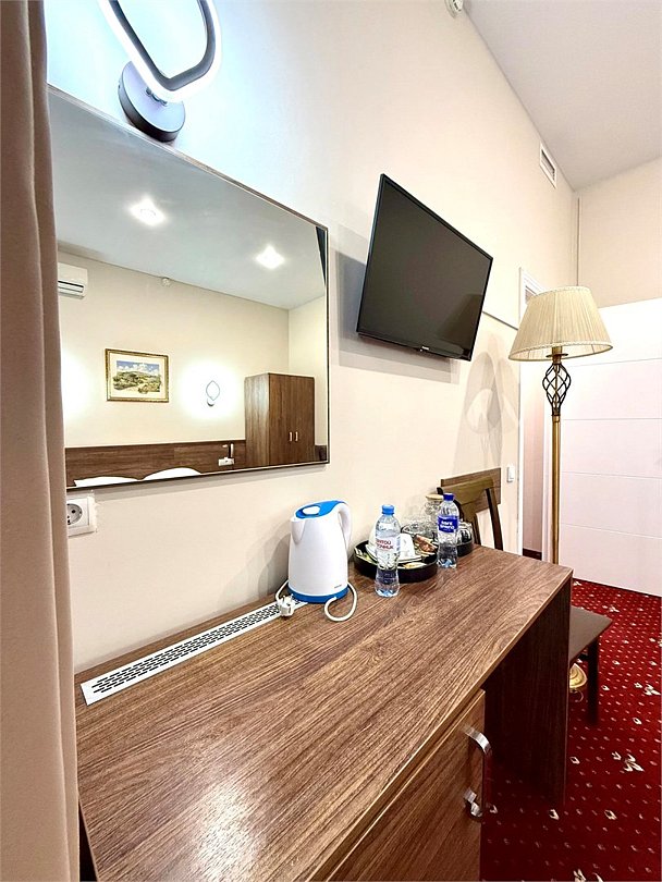 Однокомнатный номер повышенной комфортности 21м². Отличается изысканным интерьером и улучшенной обстановкой. В номере помимо стандартных удобств – мягкое кресло, пуф, увеличенная зона для работы. Идеален для тех, кто ценит дополнительные удобства и простор.Услуги и удобства