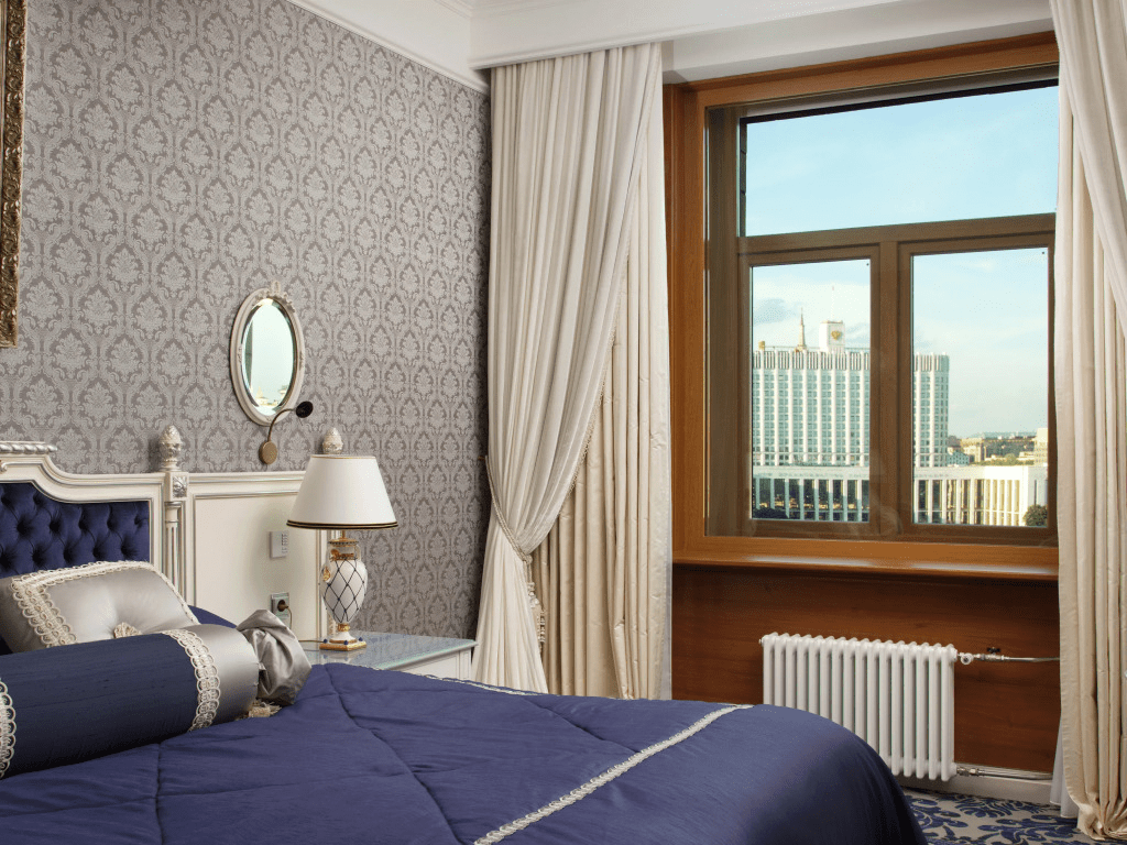 Отель «Radisson Collection Hotel, Moscow» расположен в центре Москвы, в излучине Москвы-реки. Рядом находится Дом Правительства РФ, мэрия Москвы, МИД, Центр международной торговли, «Экспоцентр», бизнес-центр «Москва-Сити», посольства Великобритании и США, торгово-развлекательный центр «Европейский», станция метро «Киевская» и Киевский вокзал. На транспорте можно добраться до исторического центра Москвы и его сердца — Красной площади.