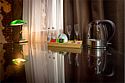 Номер категории Комфорт двухместный с 1 или 2 односпальными кроватями, от 16 кв.м. до 28 кв.м, с гидромассажной ванной, с мебелью из натурального массива, а также в некоторых номерах для удобства гостей есть стиральная машина, удобный диван и другие принадлежности для максимального удобства размещения на длительное прибывания гостей.Услуги и удобства