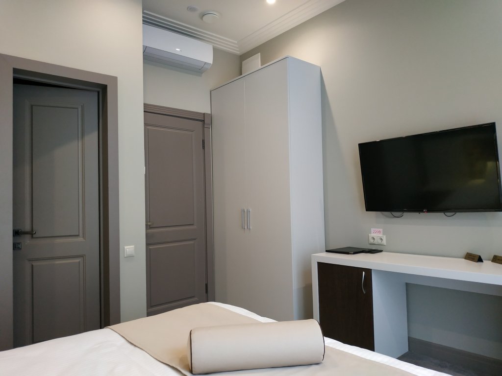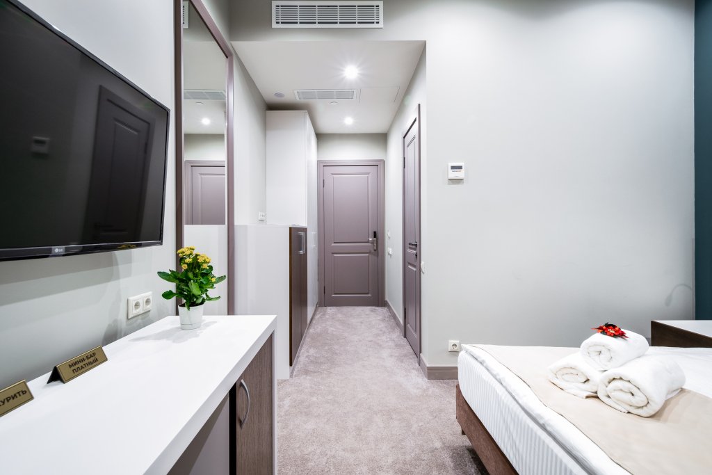 В номере вы найдёте телевизор, мини-бар и халат. Перечисленные услуги есть не во всех номерах.