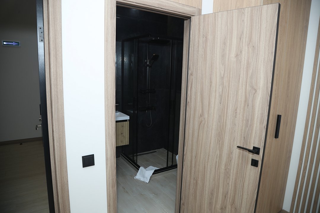 Комфортный микроклимат поможет поддерживать кондиционер. Санузел оснащен душевой кабиной с шампунем и кондиционером (для волос и тела), зубным набором, полотенцами, феном, халатами, тапочками, а также необходимой сантехникой и дозатором, наполненным мылом для мытья рук, зеркалом, туалетом.