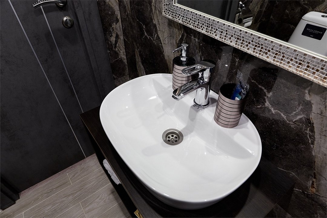 Роскошный номер с панорамным окном и двухспальной кроватью. Возможно размещение дополнительного спального места. Также в номере есть диван. В номере есть холодильник, прикроватные тумбочки, телевизор со Smart TV, кресло и столик. Есть кондиционер и москитные сетки на окнах. В ванной комнате душевая кабина, есть фен, биде и зеркало с подсветкой. Гости могут воспользоваться общей кухней. Изюминка номера - индивидуальный хамам.Услуги и удобства