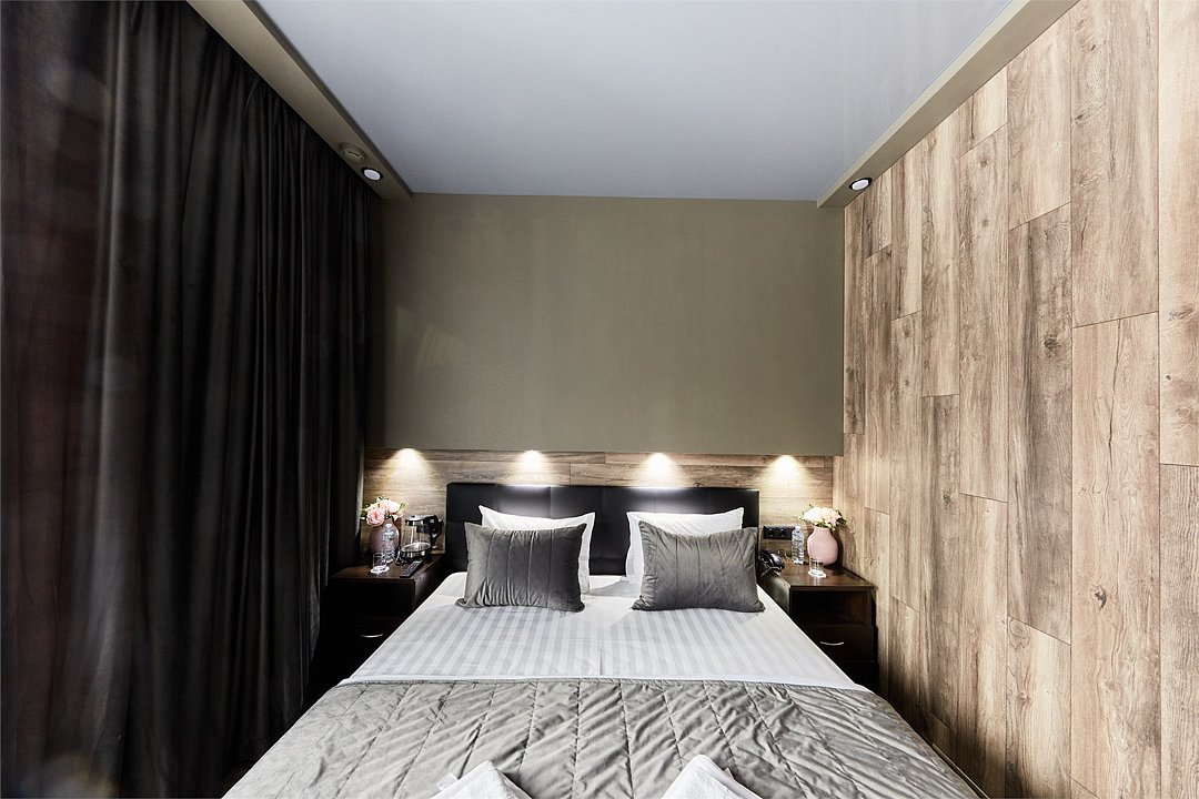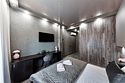 кабельное телевидение, Wi-Fi, кондиционер, светильник, фен, система безопасности, утюг, душевая кабина, санузел, биде, халаты, банные полотенца, тапочки, гигиенические средства, кровать «King size», гладильная доска, диван, шкаф для одежды, письменный стол, зеркало, обслуживание номеров, чайник, отопление, вид на город, кресло, ламинат, высокие потолки, кухонная посуда, туалетные средства, панорамные окна, диван-кровать, мини-холодильник, телевизор со Smart TV, номер для некурящих, уборка номера, услуги прачечной (платно), бутилированная вода, окна от пола до потолкаВ номере