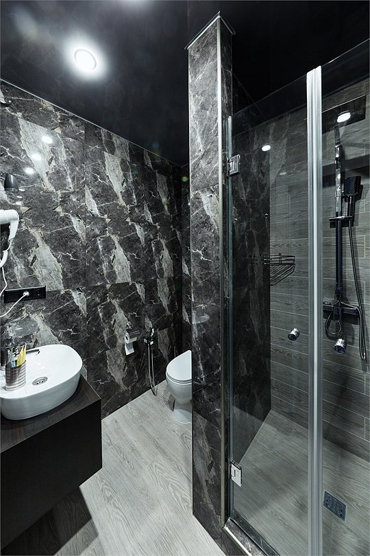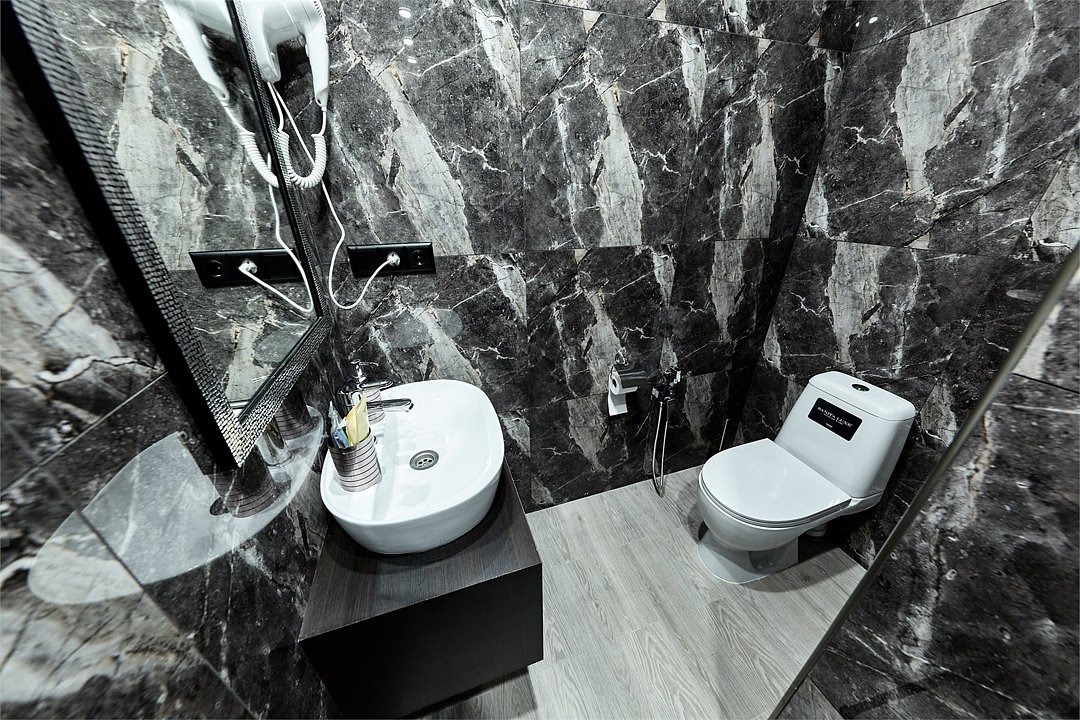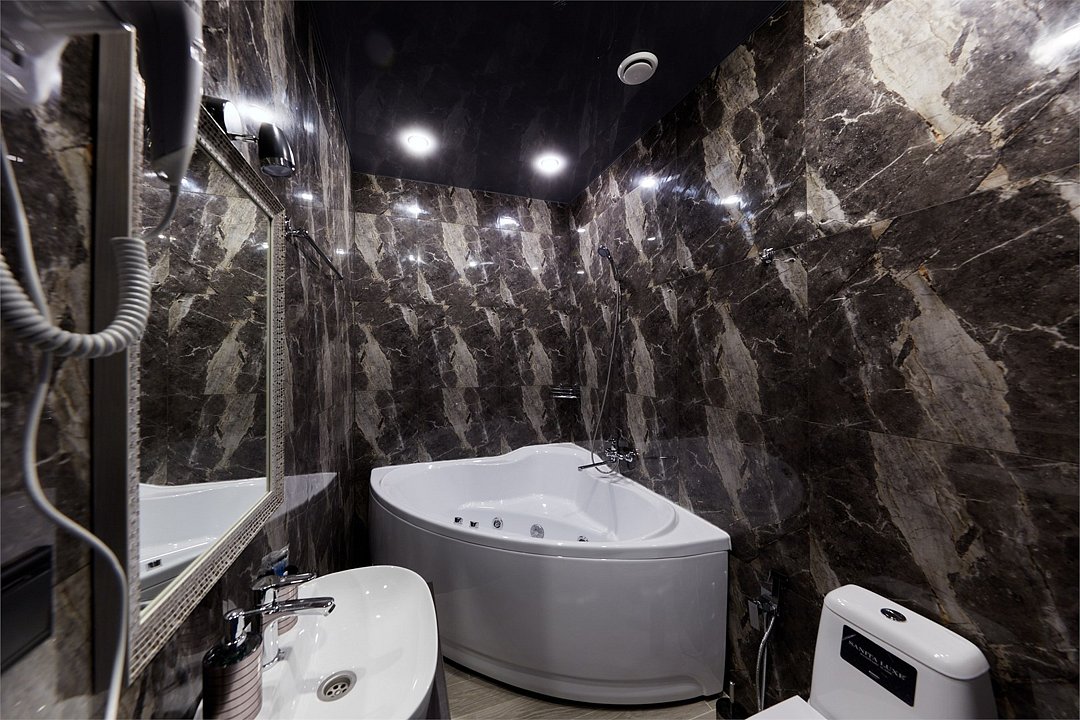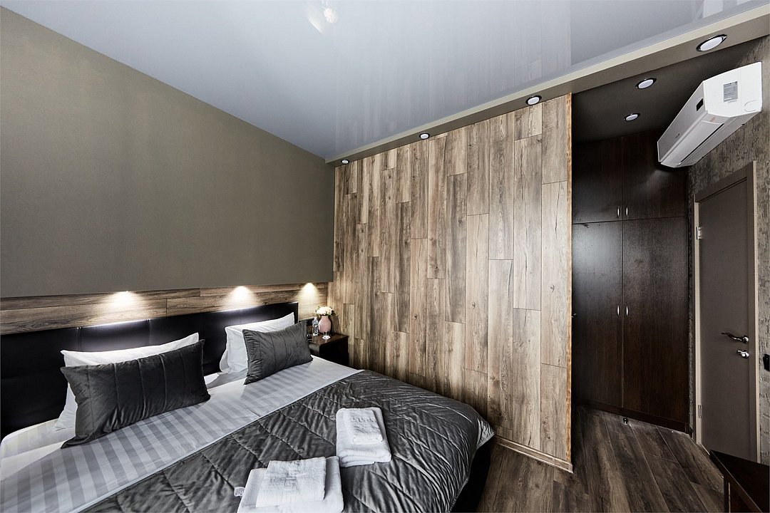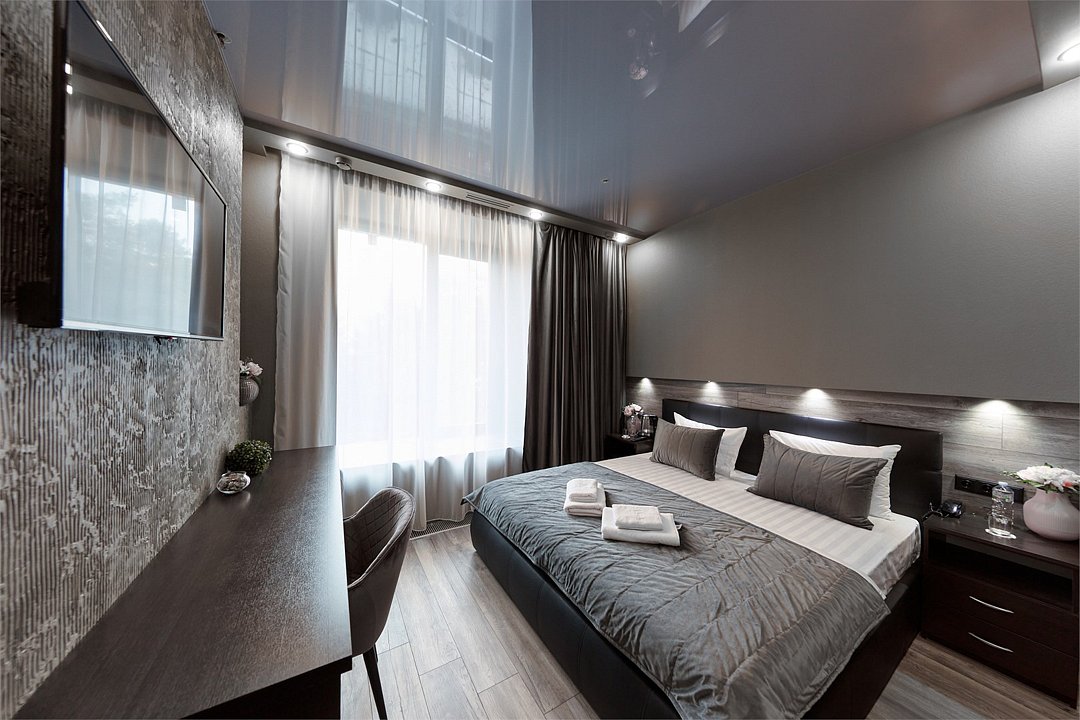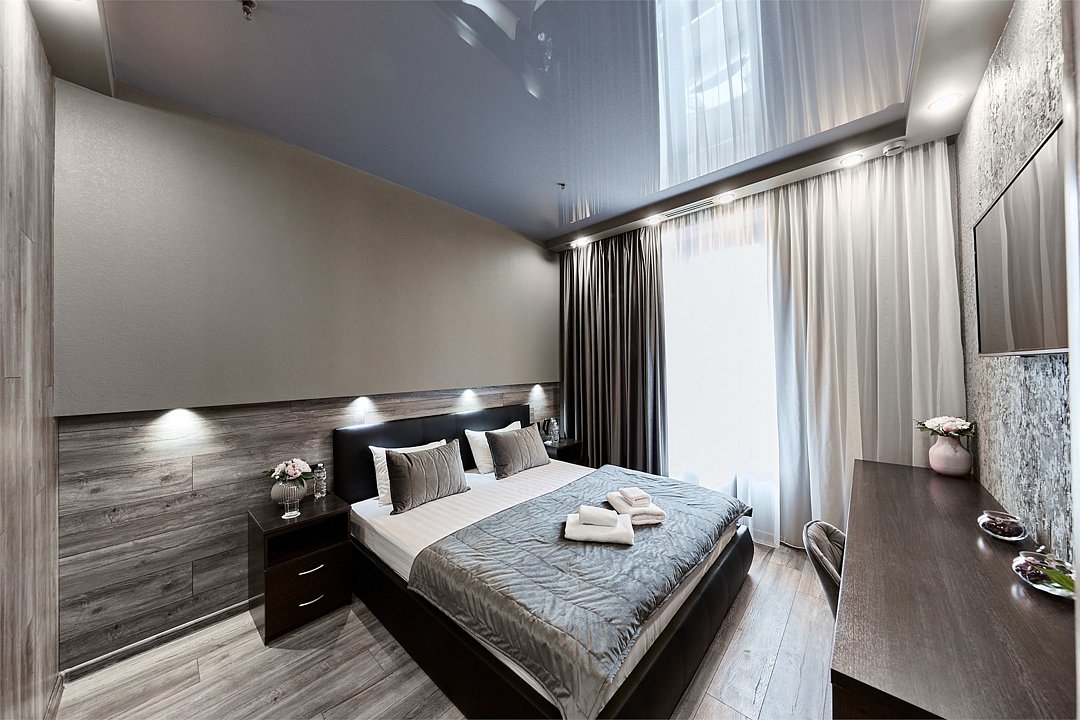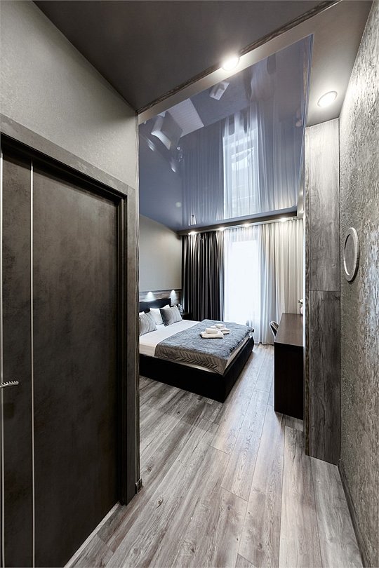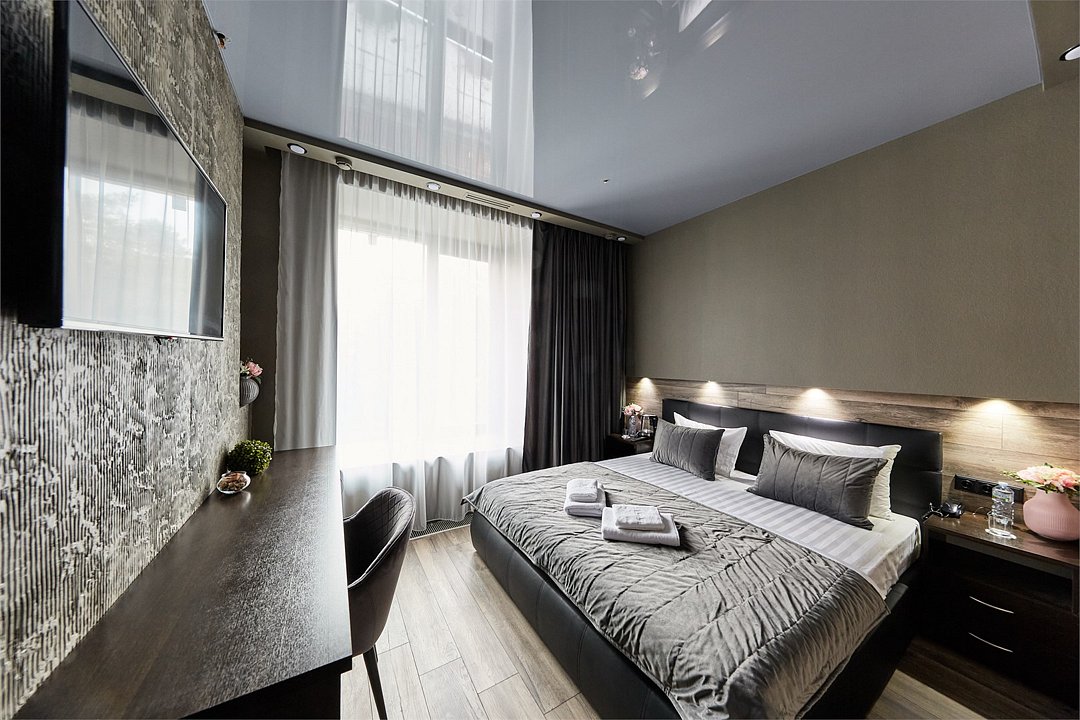 Wi-Fi, кондиционер, светильник, фен, утюг, душевая кабина, санузел, биде, теплый пол, халаты, банные полотенца, тапочки, гигиенические средства, сауна, кровать «King size», гладильная доска, шкаф для одежды, зеркало, обслуживание номеров, чайник, косметическое зеркало, отопление, вид на город, кресло, ламинат, высокие потолки, кухонная посуда, туалетные средства, панорамные окна, диван-кровать, раскладной диван, телевизор с плоским экраном, мини-холодильник, телевизор со Smart TV, номер для некурящих, рабочий стол, уборка номера, услуги прачечной (платно), бутилированная вода, СПА, затемняющая штораВ номере
