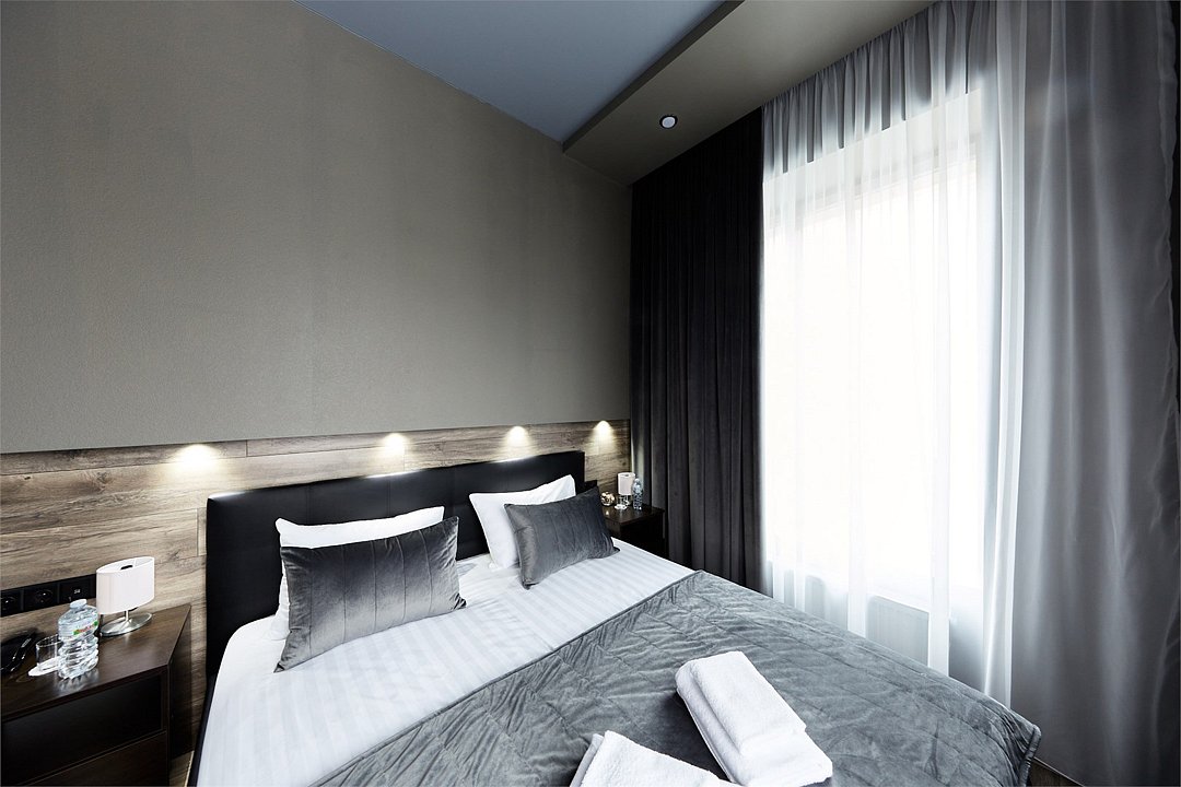 Элегантный номер с окном, двухспальной кроватью. В номере есть холодильник, прикроватные тумбочки, телевизор со Smart TV, кресло и столик. Есть кондиционер и москитные сетки на окнах. В ванной комнате душевая кабина, есть фен и зеркало с подсветкой. Гости могут воспользоваться общей кухнейУслуги и удобства