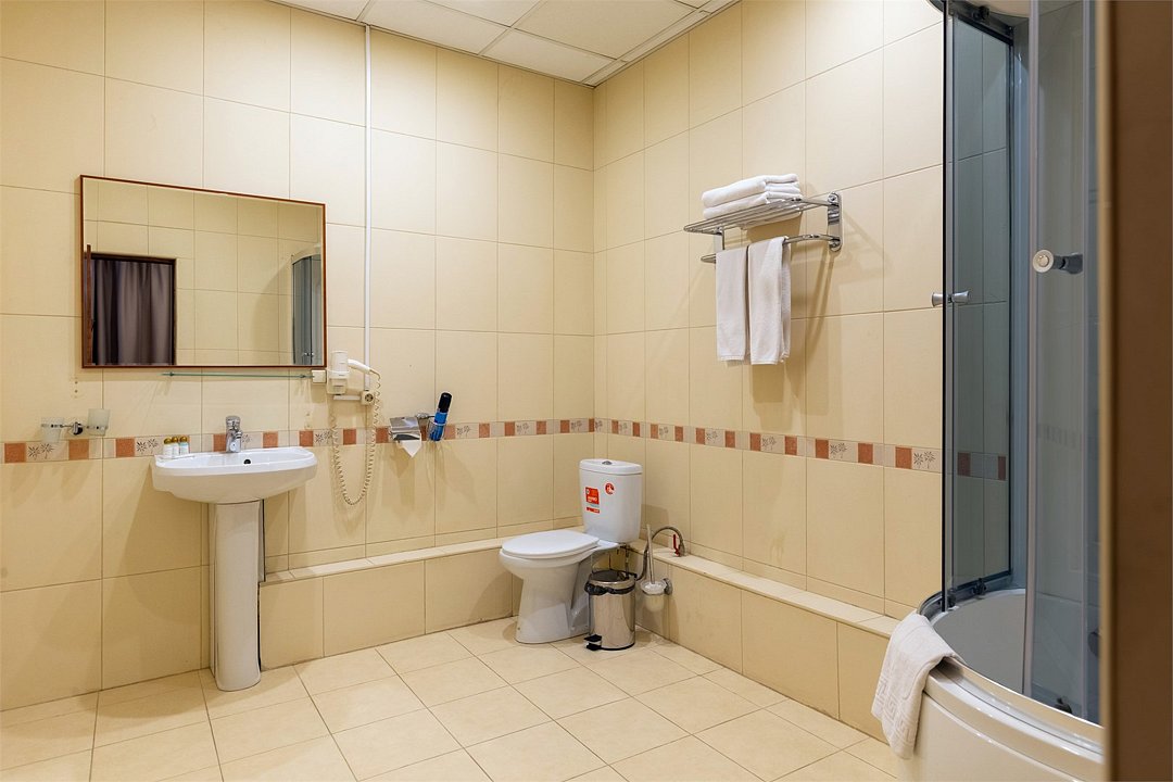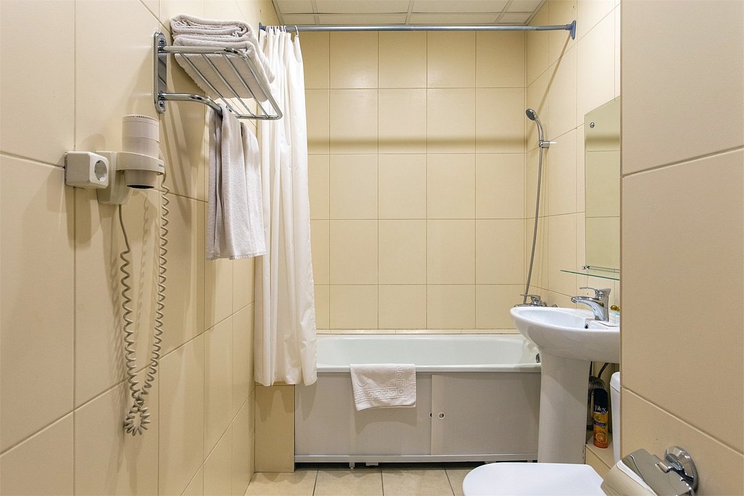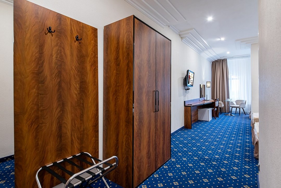 Площадь от 24 кв. м Экономный вариант для размещения 3 человек. В номере три односпальные кровати. В номере: рабочая зона, кондиционер, ТВ, полотенце, Wi-Fi, душ, ванна, холодильник (мини-бар). В комплектацию номера включен индивидуальный гигиенический набор.Услуги и удобства