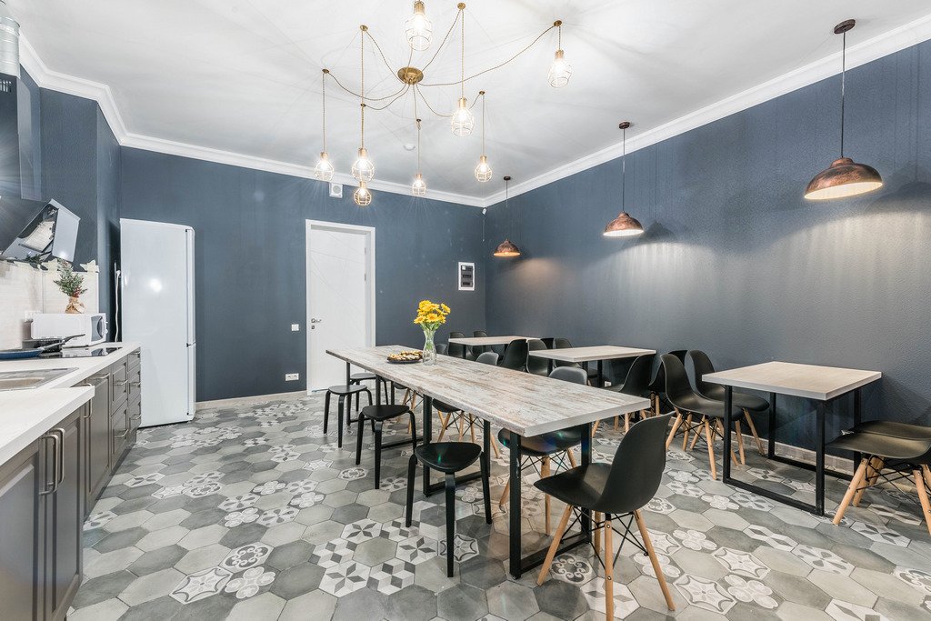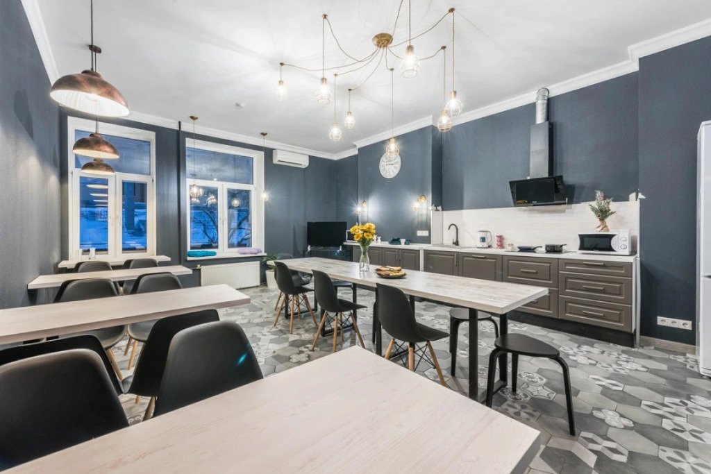 В хостеле разделили общие зоны на блоки для отдыха и работы, так что для гостей найдётся место, чтобы сосредоточиться на работе или учёбе. Для любителей спорта есть баскетбольная площадка, бильярд и набор для бадминтона.