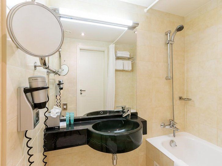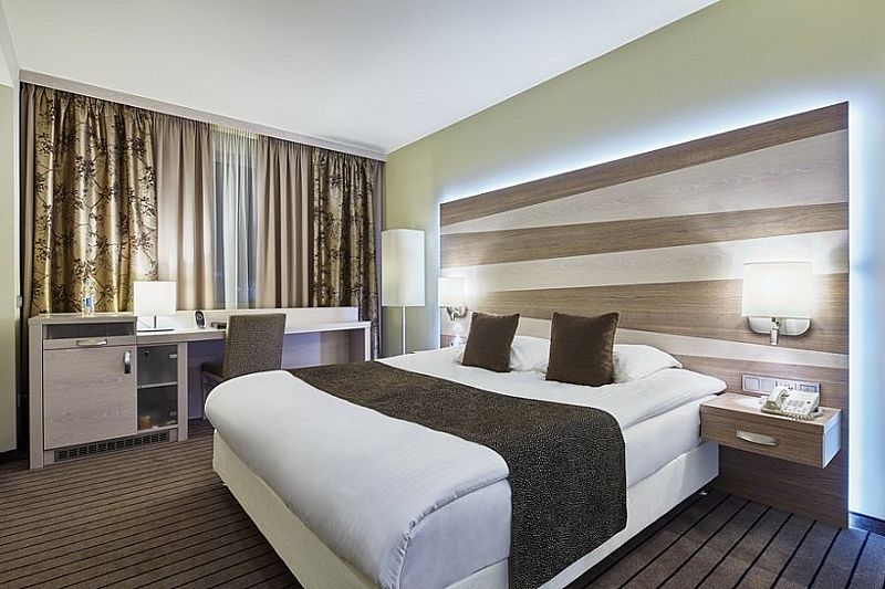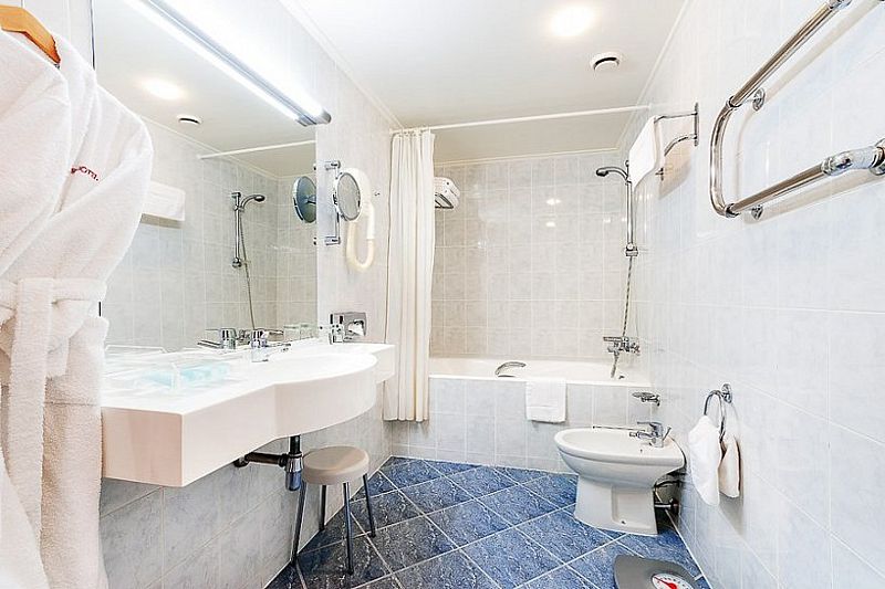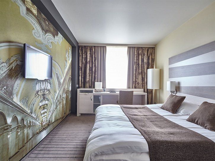 Улучшенный номер площадью 23 м², оснащенный системой климат-контроля, с одной двуспальной кроватью. Для комфортного пребывания в номере есть рабочий стол, стулья, телевизор, мини-бар, спутниковое ТВ, Wi-Fi, телефон, сейф, тапочки. В вашем распоряжении отдельная ванная комната с ванной и необходимыми туалетно-косметическими принадлежностями.