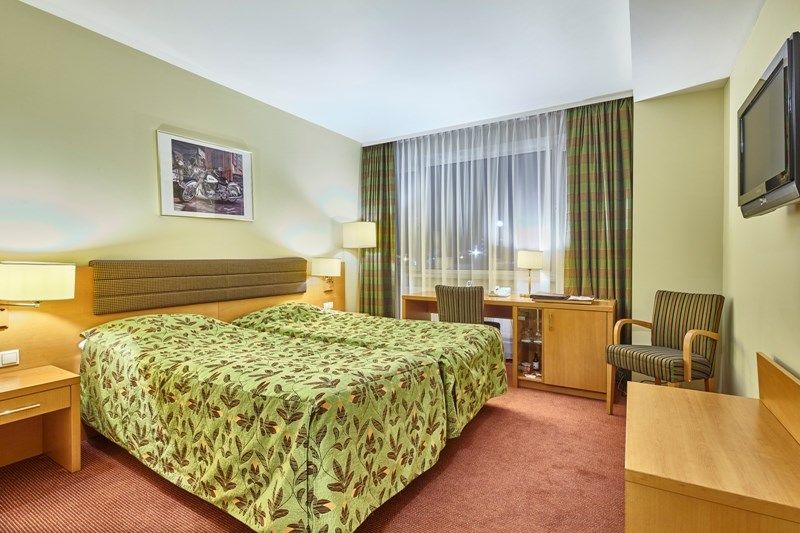 В номере: две односпальные кровати, стол, стулья, прикроватные тумбочки, бра, письменный стол, гардероб, вешалка, сейф, центральное отопление, телефон, зеркало, тумбочка, индивидуальные розетки, телевизор, спутниковое телевидение, Wi-Fi, мини-бар, вид на город.