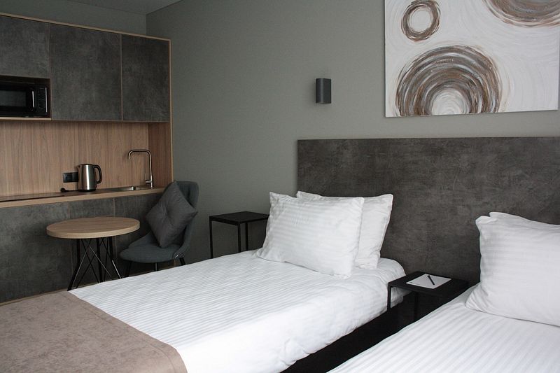Однокомнатные апартаменты, площадью 20 м² с двумя односпальными кроватями, кухонной и обеденной зоной, ванной комнатой. Оборудованы современной дизайнерской мебелью и отличаются изысканным декором.
