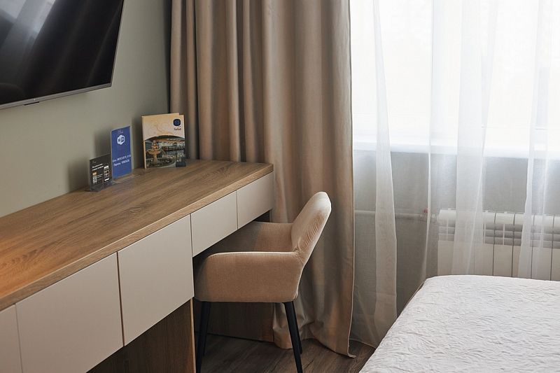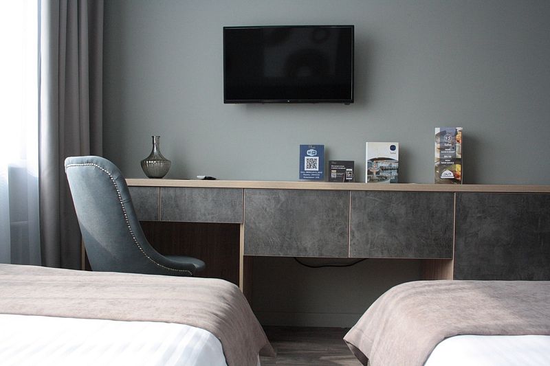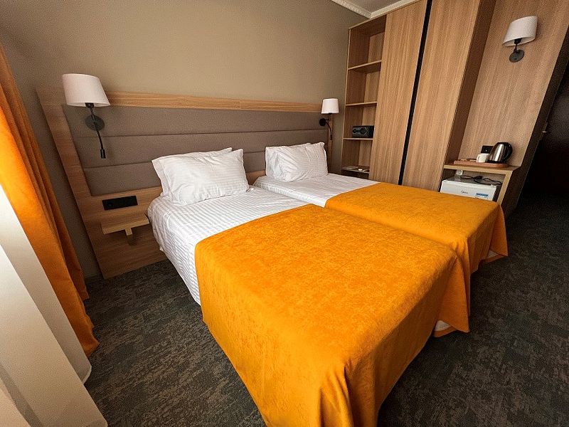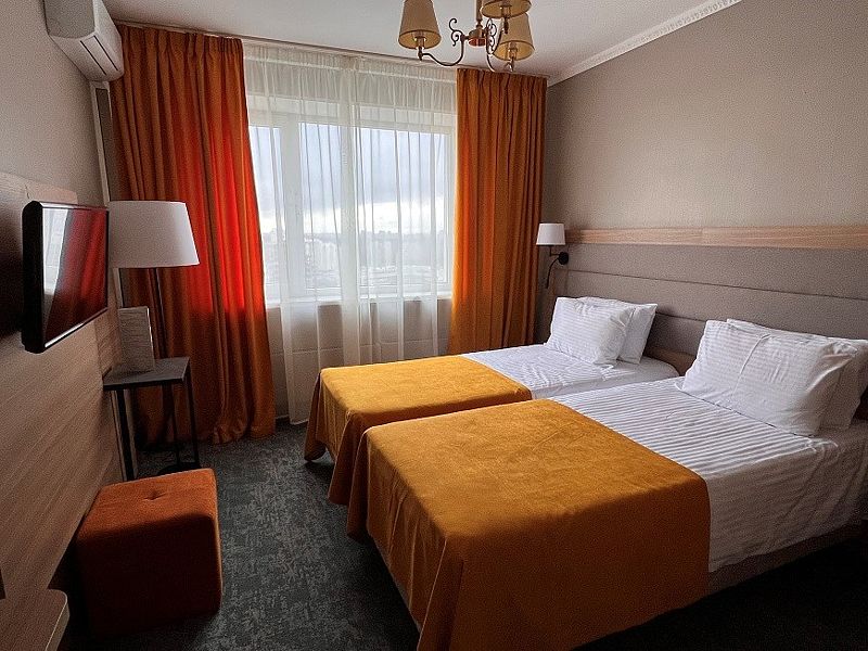 Новые двухместные номера категории «Бизнес» – идеальный выбор для гостей, привыкших к повышенному комфорту. Современная комфортная мебель, ортопедический матрас, удобный шкаф для хранения одежды, теплое мягкое освещение – каждая деталь интерьера создает уникальное впечатление от номера и располагает к отдыху.