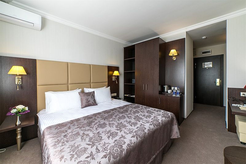 Приятным бонусом для гостей номеров категории Делюкс станет минибар с комплиментарными закусками, напитками и чайной станцией. Также к Вашим услугам бесплатный Wi-Fi, LCD телевизор, кондиционер. Все номера снабжены ортопедическими матрасами и полным ассортиментом косметических принадлежностей.