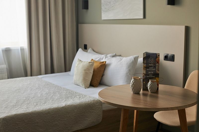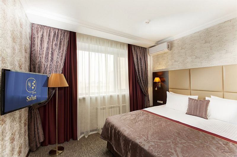 Новые номера категории Делюкс в отеле Салют – идеальный выбор для гостей, привыкших к повышенному комфорту. Классический интерьер и оборудование современного стиля создают уникальную атмосферу. А вид на окрестности с высоты 15 этажа не оставит Вас равнодушными.