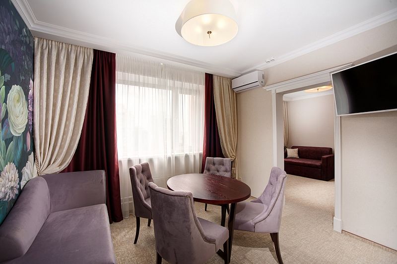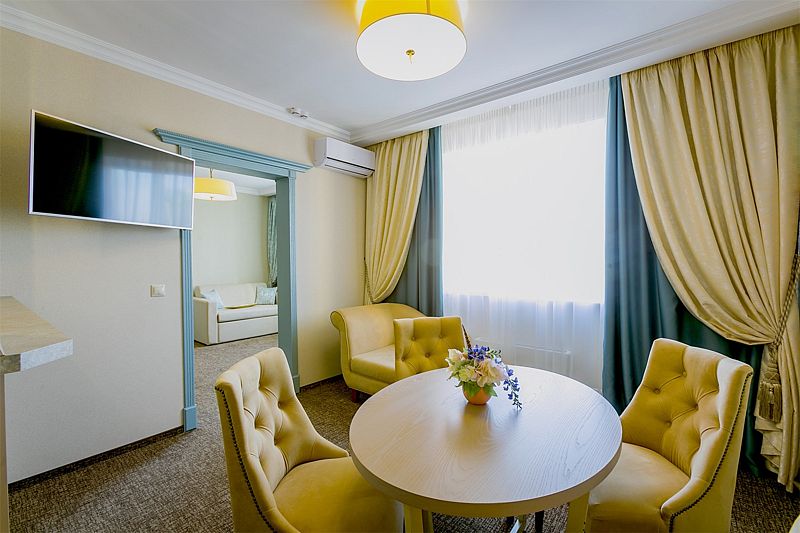 Приятным бонусом для гостей номеров категории «Делюкс» станет минибар с комплиментарными закусками, напитками и чайной станцией. Также к Вашим услугам бесплатный Wi-Fi, LCD телевизор, кондиционер. Все номера снабжены ортопедическими матрасами и полным ассортиментом косметических принадлежностей.