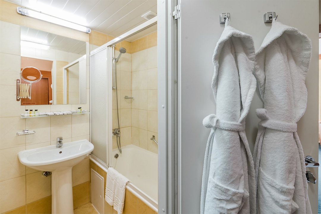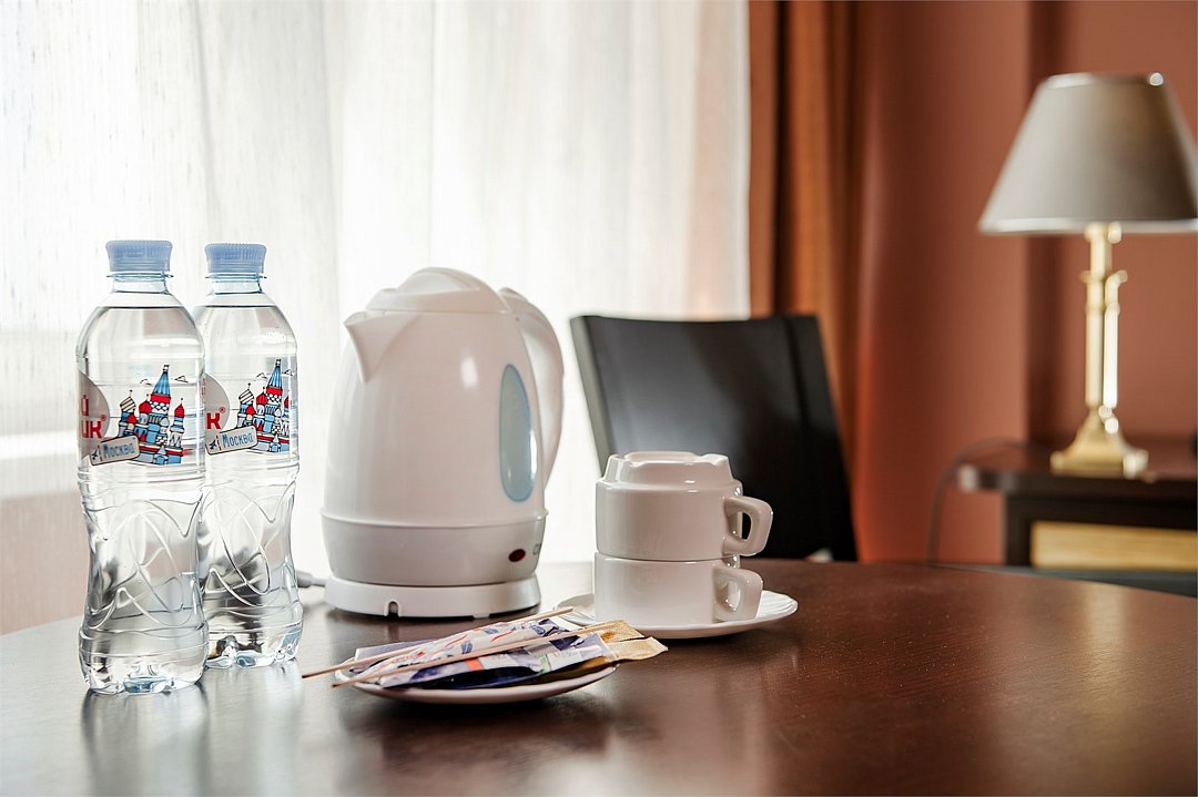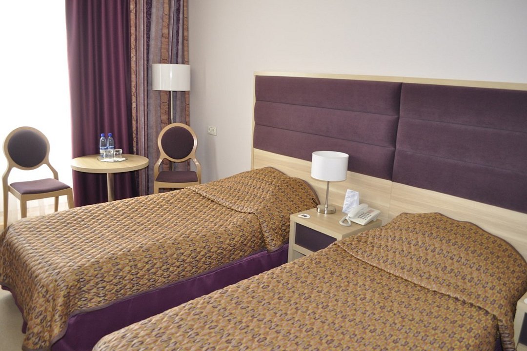 Современный однокомнатный номер, площадью 21 кв.м., состоящий из небольшой прихожей и спальной комнаты. В номере удобная современная мебель, 2 кровати (90*200), а так же организованное рабочее пространство с письменным столом. Гостям предоставляется меню подушек, минеральная вода (при заезде), шоколад (при заезде). На каждом этаже расположена гладильная комната. Подходит для размещения 1-2 человек. В номере: FI-WI, сейф, телевизор, телефон, спутниковое телевидение, вентилятор, холодильник, электронные замки, зеркало, кресло, шкаф для одежды, письменный стол. В ванной комнате: тапочки, банные полотенца, гигиенические средства фен, ванная.Услуги и удобства