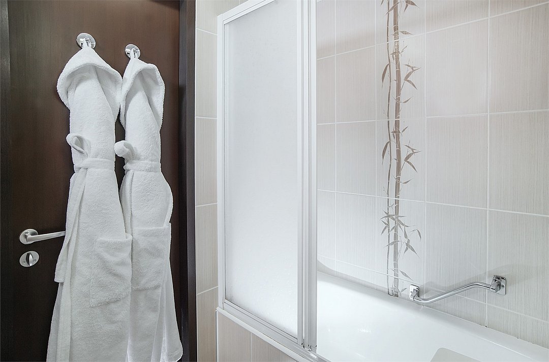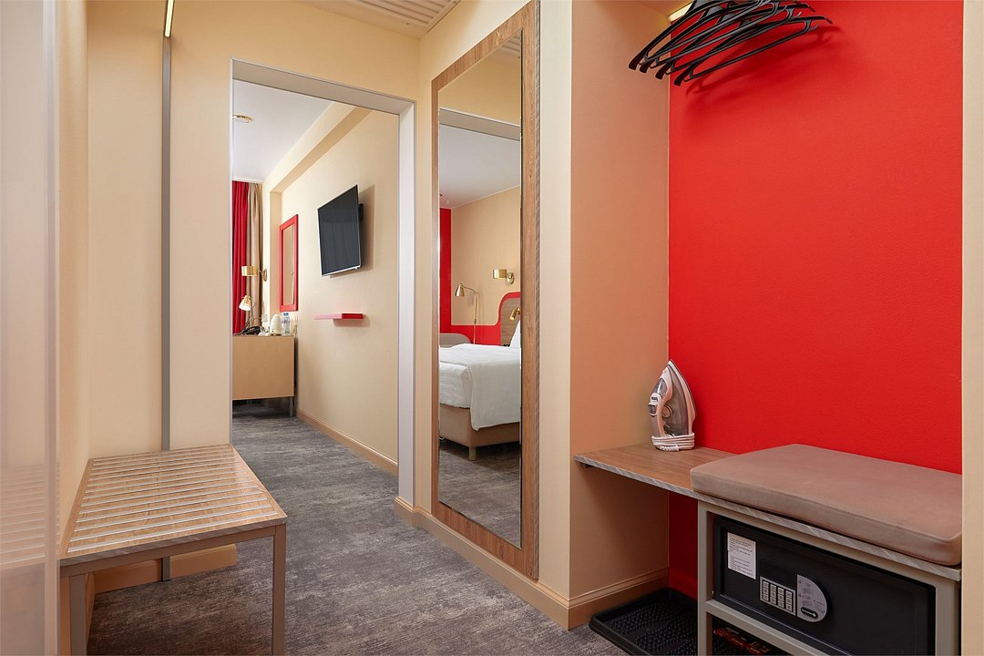 1 двуспальная кровать (180х200см) LCD-телевизор с функцией Smart-TV или ЖК телевизор Устройство для зарядки гаджетов с функцией воспроизведения музыки Smart-часы для соблюдения режима сна Телефон Мини-холодильник Сейф Письменный стол и стул Настольная лампа, бра и торшер Встроенный шкаф с вешалками 2 прикроватных тумбочки Полукресла и пуфик Подставка для багажа Зеркало в полный рост Журнальный столик Ванная комната Ванна Весы Полотенца Фен Косметическое зеркало Косметика бренда Hotel collection: Гель для душа Шампунь Зубной набор Мыло Приятные мелочи Дополнительное одеяло Тапочки Фонарик Посуда Питание и напитки 2 бутылки воды при заезде ЧайникУслуги и удобства