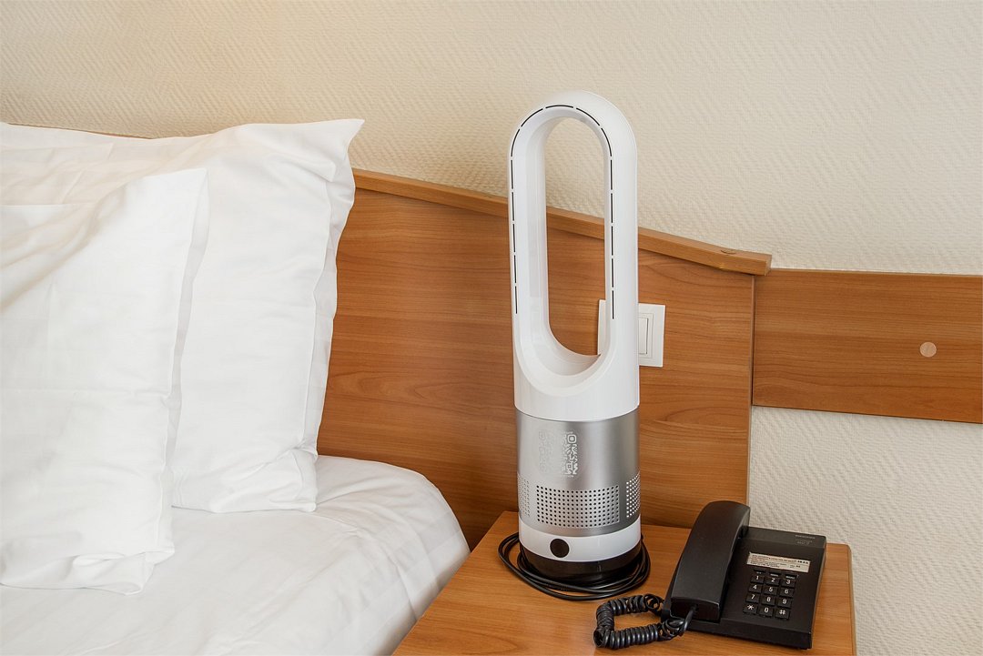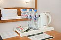 Wi-Fi, кондиционер, светильник, настольные лампы, фен, электронные замки, ванная комната, душевая кабина, халаты, тапочки, две односпальные кровати, стулья, шкаф для одежды, письменный стол, вид на город, кулер на этаже, туалетные средства, туалет, внутренний телефон, мини-холодильник, телевизор со Smart TV, умная колонка, туалетные принадлежности премиум-класса, мылоВ номере