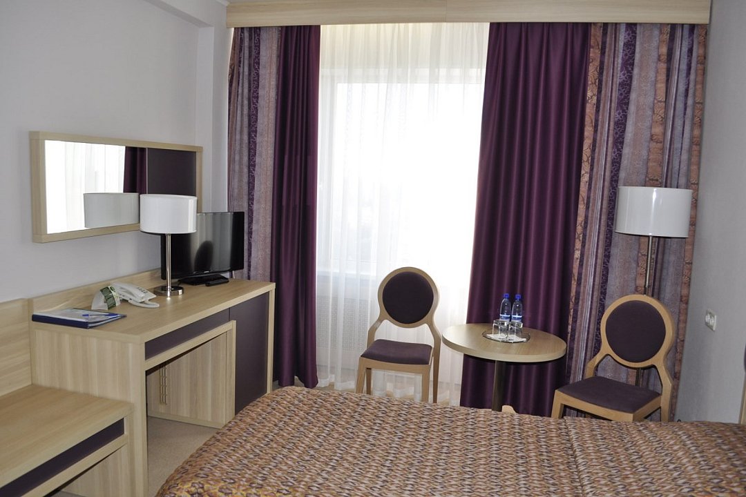 Улучшенный однокомнатный номер. состоит из прихожей, спальни и ванной комнаты. В комнате - рабочий стол, журнальный столик, кресло, стул, холодильник, телевизор и телефон. Дополнительные принадлежности: фен, тапочки, косметический набор для душа.Услуги и удобства