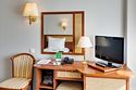 телевизор, кабельное телевидение, Wi-Fi, кондиционер, светильник, настольные лампы, фен, электронные замки, ванная комната, ванна, халаты, банные полотенца, тапочки, гигиенические средства, двуспальная кровать, стулья, вешалки, письменный стол, багажная тумба, зеркало, сейф, чайник, унитаз, раковина, отопление, душ, вид на город, кресло, стул, внутренний телефон, телевизор с плоским экраном, мини-холодильник, гостиничная парфюмерияВ номере